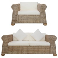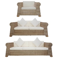 $955.97This rattan sofa set combines style and functionality, and will make a great addition to your home. Thanks to the genuine rattan material, the set is easy to clean, hardwearing and suitable for daily use. It features a sturdy wooden frame, which is highly durable and stable. The thick seat and back cushions are considerably conformable and also washable thanks to their removable covers. In addition, the wide armrests add to your seating comfort. Delivery includes a armchair, a 2-seater sofa, 3 seat cushions, 3 back cushions and 2 pillows.