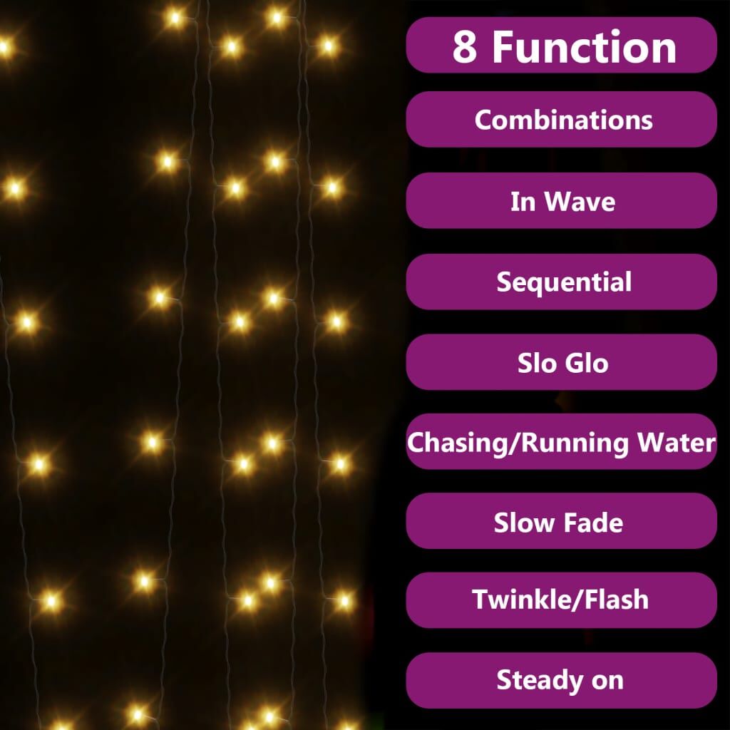 The solar fairy light is perfect for use as a lighting addition to any decorative project. It is suitable for Christmas, parties, weddings and other holidays. During the day, the efficient solar panel converts sunlight into electrical energy stored in the built-in battery. At night, the fairy lights will light up automatically. The string light is equipped with 200 energy-saving LEDs, creating a magical lighting performance. It has 8 different lighting effects: combination mode, waves, sequential mode, slowly glowing mode, flashing, slowly fading mode, twinkling and continuous lighting. This is a great decorative accessory to illuminate indoor and outdoor spaces. Note: The solar fairy light should be charged by direct sunlight before first use. The product has a USB connector, but the certified 5V USB power source is not included.