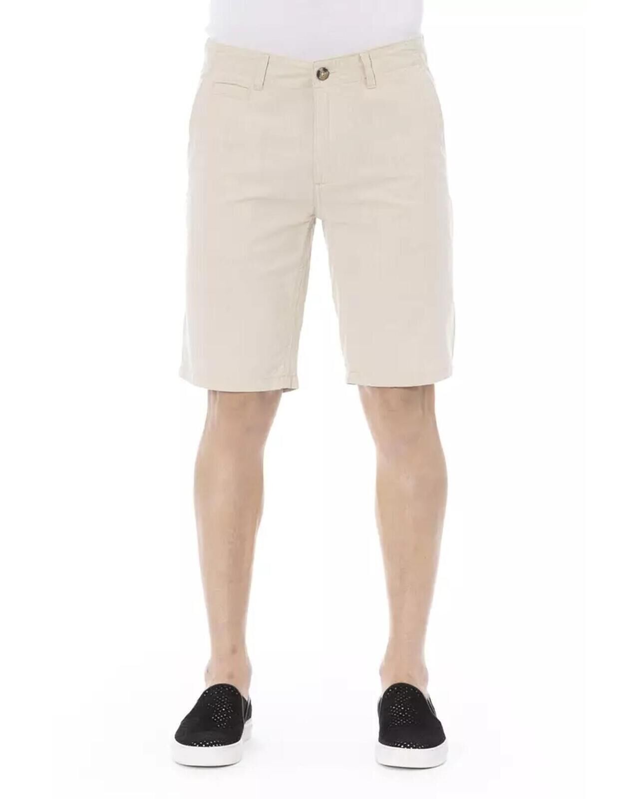 Solid Color Bermuda Shorts with Front Zipper and Button Closure. Men
