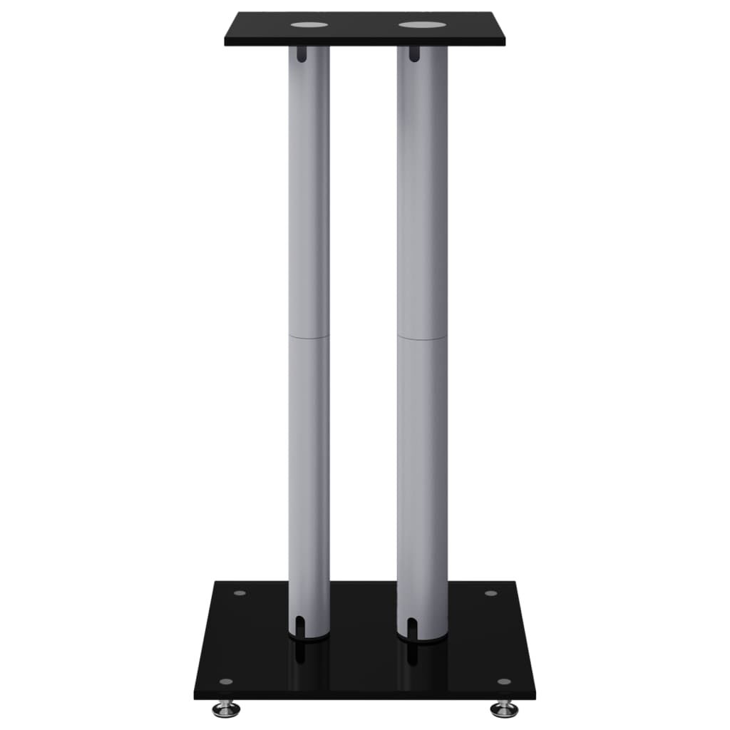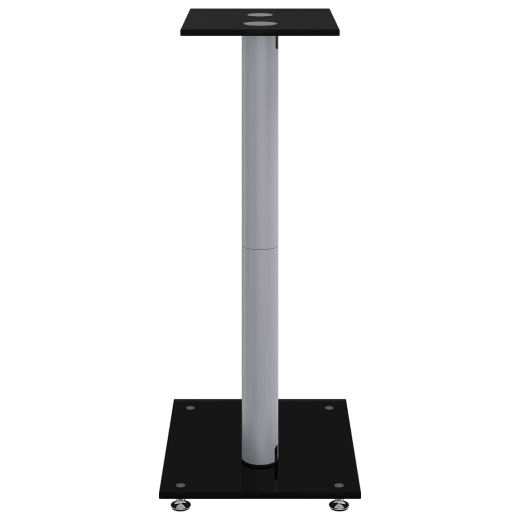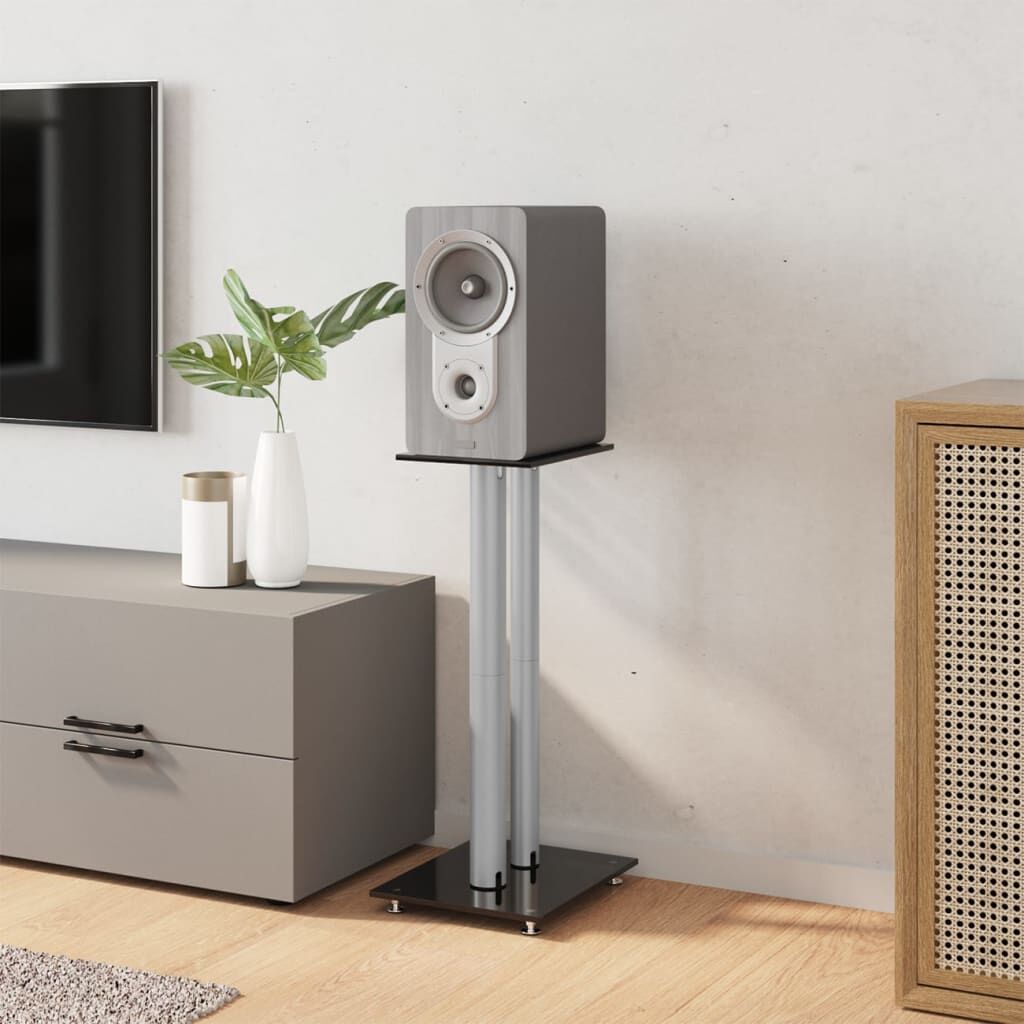 Enjoy the quality of your free-standing sound system with the pair of speaker stands. Durable material: With a smart structure, tempered glass is stronger and more durable than any other glass. Tempered glass is known for withstanding forces like high impacts, scratches, blows, etc.Sturdy construction: The speaker floor stand's pillar is made of aluminium. Aluminium metal is lightweight and strong. It's resistant to corrosion with a self-protecting oxide layer. The aluminium frame ensures sturdiness and stability.Wire management: The hollow stand tube of the speaker mount allows you to hide the speaker wires inside, making your home look neater and more organised.Non-slip design: The four skidproof feet under the base plate help to reduce vibration and prevent your carpet or wood floor from being damaged by the base plate. Good to know:To make assembly as easy as possible, each product is delivered with a manual.