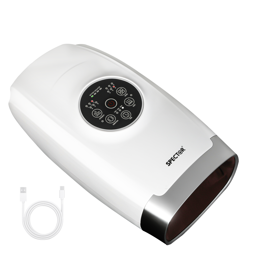 Relax and unwind with this smart hand massager, designed to provide a custom massage experience with 6 modes, 2 vibration settings, and 6 intensity levels. It uses acupressure therapy to target key points on your wrist, palm, and fingers, helping to improve circulation and relieve pain from conditions like arthritis. The built-in heating function (up to 43°C) adds soothing warmth, while the 3 timer settings (10, 15, or 20 minutes) let you personalise your session. With a long-lasting 2200mAh battery offering over 4.5 hours of use, this massager is USB rechargeable. Ideal as a thoughtful gift for family, friends, or the elderly, it's perfect for occasions like Mother's Day, Father's Day, or birthdays!