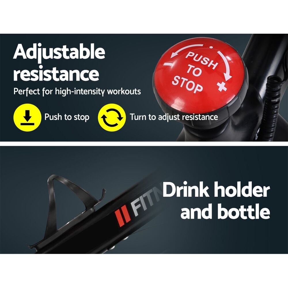 $183.29Now, nothing can stop your bike training regimen. Not even bad weather. Our Spin Bike helps to supplement your road biking sessions or lose some weight and get fit in the comfort of your home anytime. With a heavy-duty stainless steel 6kg flywheel and automotive-grade drive belt that delivers plenty of resistance via a control knob, the spin bike offers a smooth and noiseless workout. The frame itself is made of industrial-strength powder-coated steel for durable and robust use. Plus, an onboard computer with an LCD monitor assists in tracing six fitness parameters in one easy operation. The spin bike features an extra-thick padded saddle seat that is fully adjustable in height and position. The handlebar is also adjustable to suit your handling comfort. Not least, the spin bike comes with non-slip pedals with straps and built-in transportation wheels for easy mobility.