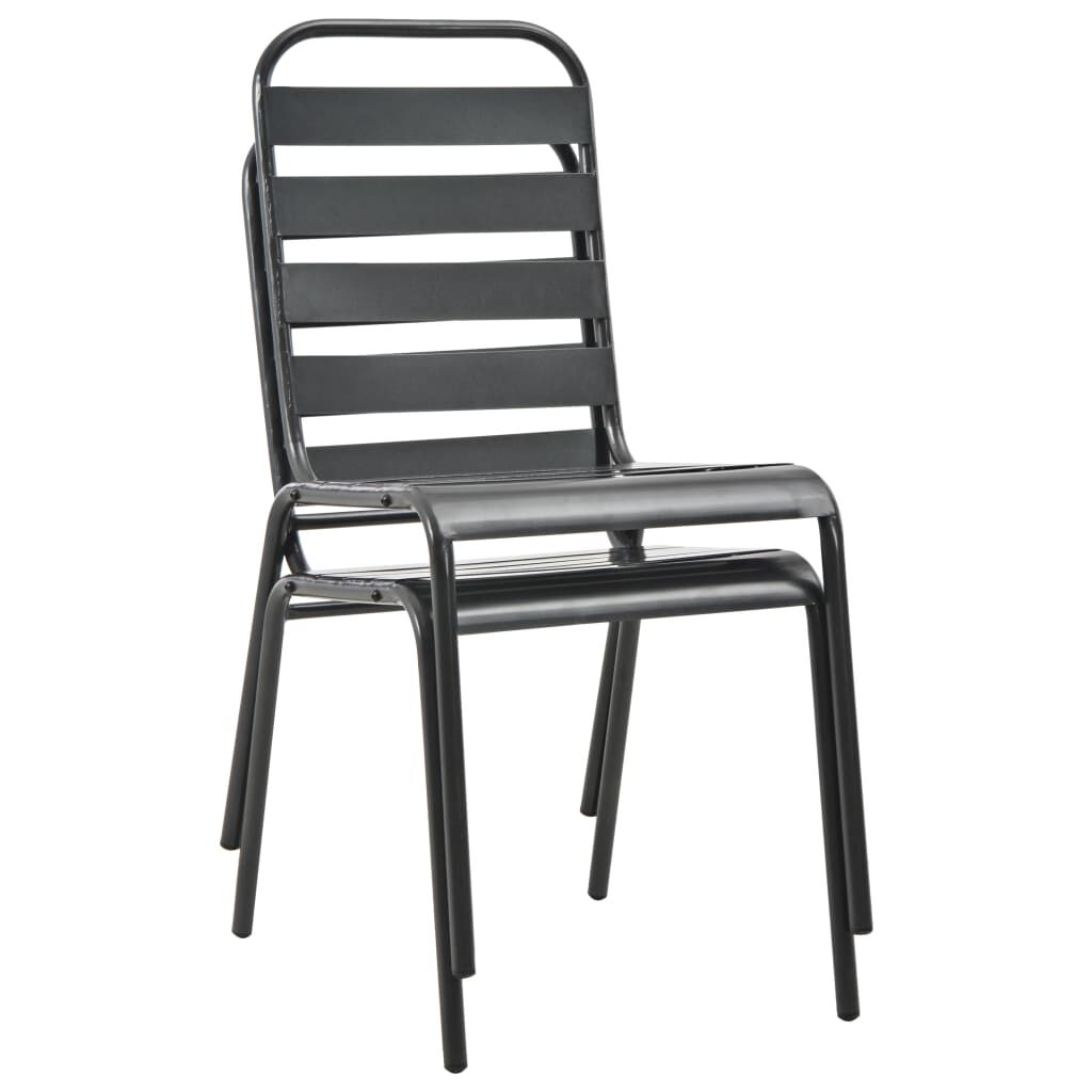 These stacking dining chairs have a slatted design, and will add a touch of industrial style to your patio, garden or dining room. The high-quality garden chairs are made of sturdy steel that has been e-coated and then powder-coated. The e-coating (electrophoretic coating) is applied to make the chairs resistant to rust, weather, and long-term outdoor use, while the powder coating helps to enhance the durability. The garden chairs are easy to clean and maintain. The dining chairs can be stacked to save space when not in use. The chairs are easy to assemble. Delivery includes 2 stacking chairs.