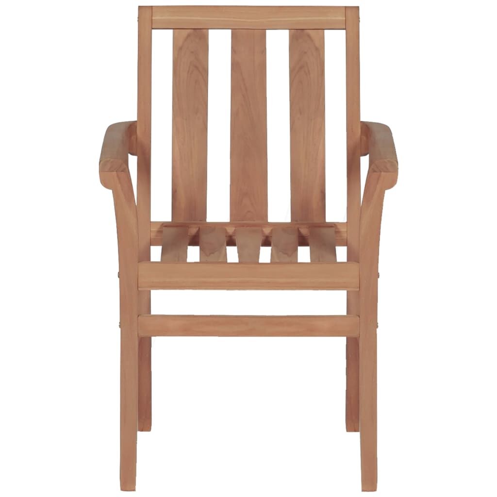 With a rustic and practical design, this wooden garden chair set will take your outdoor living space to a higher level. Constructed from extremely durable teak hard wood, this piece of teak furniture has been seasoned, kiln dried and then fine sanded to give a very smooth appearance. Teak wood is known for its exceptional strength and weather resistance, making it far more suitable for garden furniture than any other kind of wood. Teak wood is the perfect choice if you want to purchase a long lasting piece of garden furniture. They have been applied with beautiful finish to give the wood a warm colour. Additionally, these chairs can be stackable when not in use to save storage space. The chairs feature a refined look that can instantly blend into any garden or patio decor. Besides, the set is an ideal choice for relaxing moments in a pastoral country house garden or near an idyllic garden pond. The armchairs are easy to assemble. Delivery includes 2 chairs.