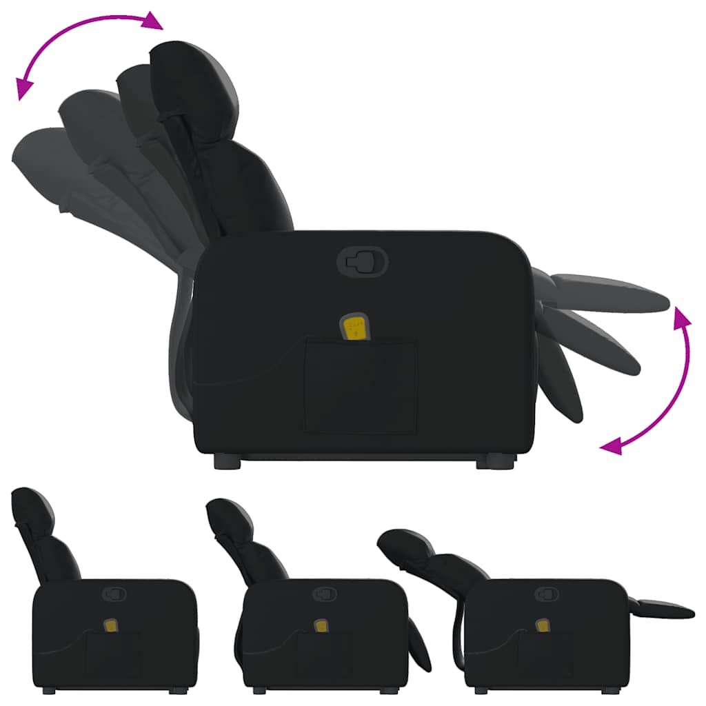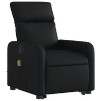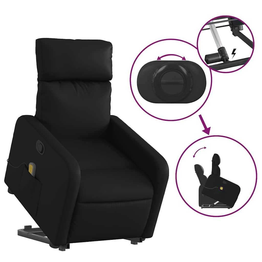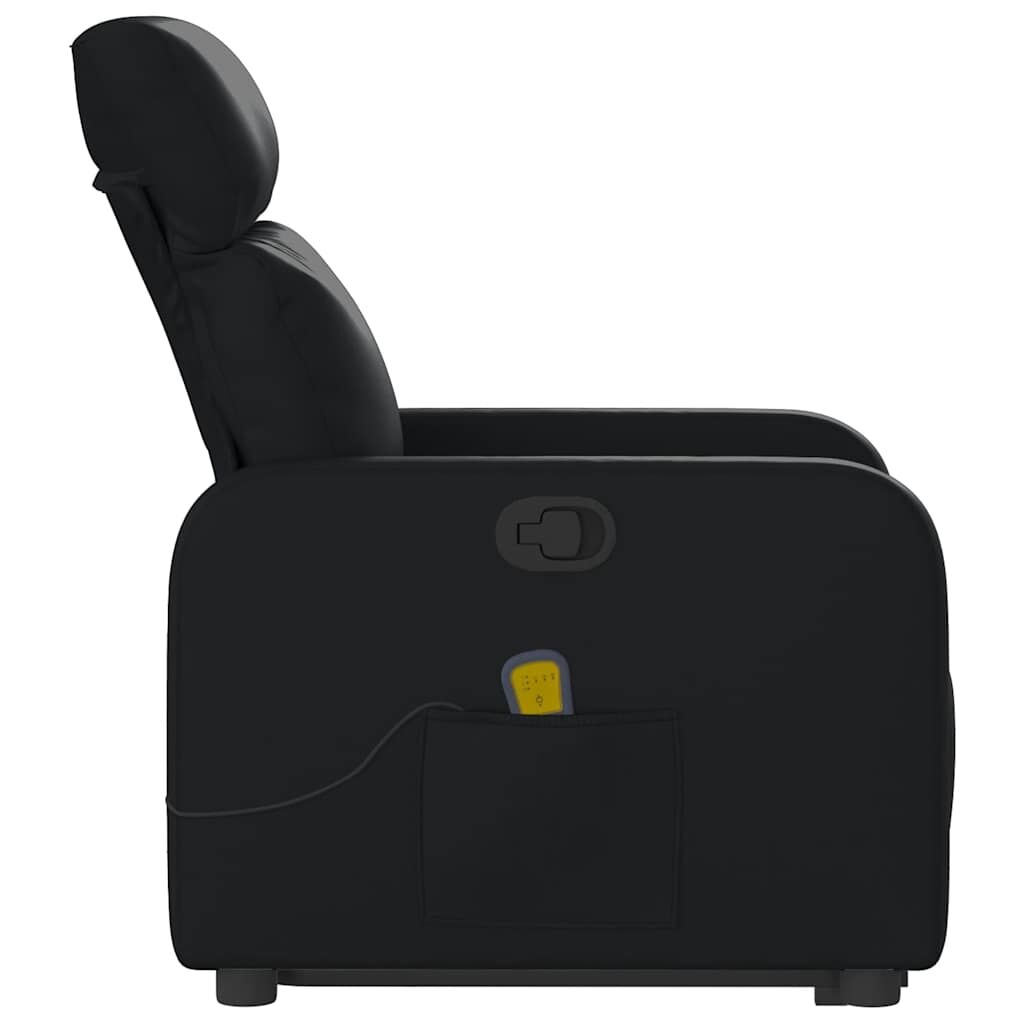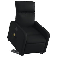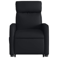 Sit back and drift away in this highly comfortable stand up massage recliner chair! Power lift function: This recliner chair for the elderly is equipped with an electric motor for the lifting-up function. Thanks to the function that pushes the entire chair up, you can easily stand without stressing your back and knees with a simple press of the button.Manual reclining function: This reclining chair has a handle on the right side. You can manually adjust the footrest and the backrest to any position as per your comfort with a simple pull of the handle. This feature allows for a maximum tilt of 135 degrees. Additionally, the backrest can go quickly back to the original place with an easy pull of the handle.Vibration function: The featured 6 massage points let you experience a better-targeted massage. Additionally, the included hand control allows you to pick different massage programs. The massage function is powered by the USB connector that requires a certified 5V USB power source (not included).Comfortable seat experience: The thickly padded seat, backrest, and wide armrests covered in faux leather provide a cosy sensation, making you feel embraced while seated. The faux leather is a highly durable material. It is resistant to stain, making it easy to clean with a damp cloth. The smooth surface also gives a luxurious look and the beauty of real leather.Convenient side pocket: This armchair has a side pocket for your remote control or keeping your essential items within easy reach.Solid and stable frame: The frame made of wood and metal provides a strong structure and stability. This reclining armchair is comfortable and durable.
