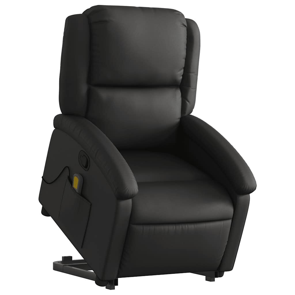 Sit back and drift away in this highly comfortable stand up massage recliner chair! Power lift function: This recliner chair for the elderly is equipped with an electric motor for the lifting-up function. Thanks to the function that pushes the entire chair up, you can easily stand without stressing your back and knees with a simple press of the button. Manual reclining function: This reclining chair has a handle on the right side. You can manually adjust the footrest and the backrest to any position as per your comfort with a simple pull of the handle. This feature allows for a maximum tilt of 135 degrees. Additionally, the backrest can go quickly back to the original place with an easy pull of the handle. Vibration function: The featured 6 massage points let you experience a better-targeted massage. Additionally, the included hand control allows you to pick different massage programs. The massage function is powered by the USB connector that requires a certified 5V USB power source (not included). Comfortable seat experience: The thickly padded seat, backrest, and wide armrests covered in real leather provide a cosy and warm sensation, making you feel embraced while seated. Real leather is a naturally timeless material. It can last a lifetime with proper care and maintenance. The smooth surface also gives it a stylish look while ensuring optimal comfort. Convenient side pocket: This armchair has a side pocket for your remote control or keeping your essential items within easy reach. Solid and stable frame: The frame made of wood and metal provides a strong structure and stability. This reclining armchair is comfortable and durable.