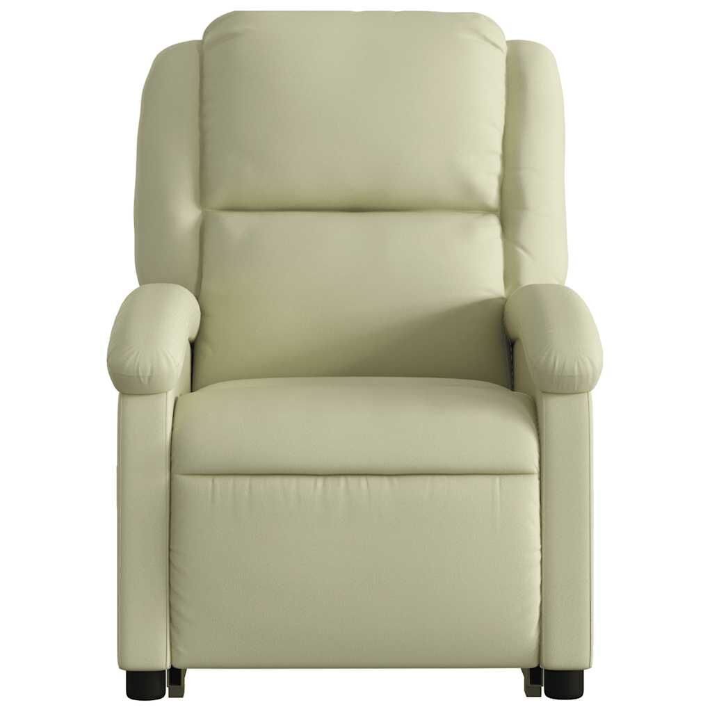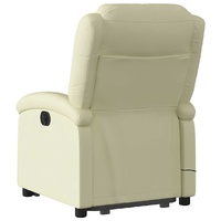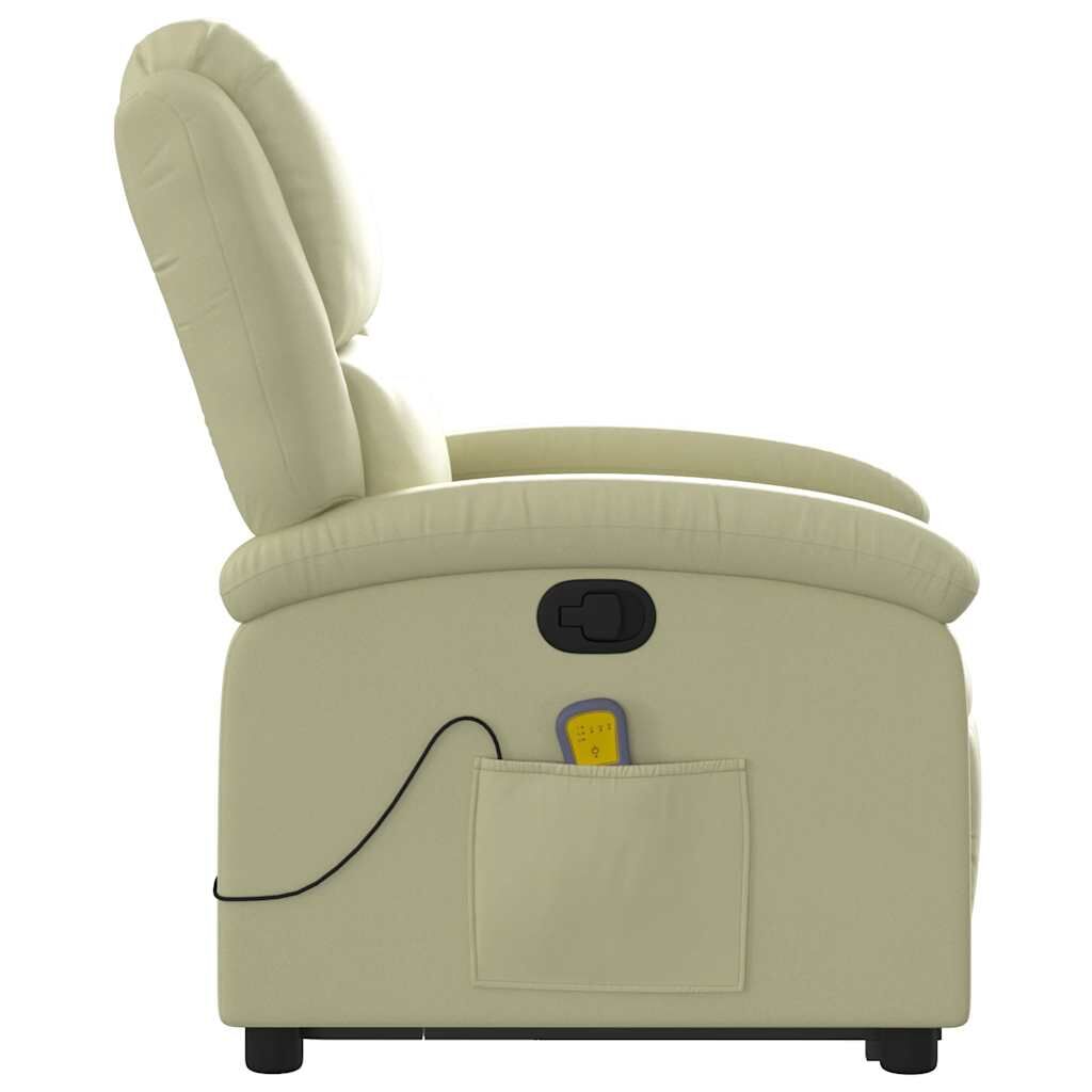 Sit back and drift away in this highly comfortable stand up massage recliner chair! Power lift function: This recliner chair for the elderly is equipped with an electric motor for the lifting-up function. Thanks to the function that pushes the entire chair up, you can easily stand without stressing your back and knees with a simple press of the button. Manual reclining function: This reclining chair has a handle on the right side. You can manually adjust the footrest and the backrest to any position as per your comfort with a simple pull of the handle. This feature allows for a maximum tilt of 135 degrees. Additionally, the backrest can go quickly back to the original place with an easy pull of the handle. Vibration function: The featured 6 massage points let you experience a better-targeted massage. Additionally, the included hand control allows you to pick different massage programs. The massage function is powered by the USB connector that requires a certified 5V USB power source (not included). Comfortable seat experience: The thickly padded seat, backrest, and wide armrests covered in real leather provide a cosy and warm sensation, making you feel embraced while seated. Real leather is a naturally timeless material. It can last a lifetime with proper care and maintenance. The smooth surface also gives it a stylish look while ensuring optimal comfort. Convenient side pocket: This armchair has a side pocket for your remote control or keeping your essential items within easy reach. Solid and stable frame: The frame made of wood and metal provides a strong structure and stability. This reclining armchair is comfortable and durable.