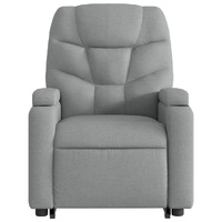 Sit back and drift away in this highly comfortable stand up massage recliner chair! Power lift function: This recliner chair for the elderly is equipped with an electric motor for the lifting-up function. Thanks to the function that pushes the entire chair up, you can easily stand without stressing your back and knees with a simple press of the button.Manual reclining function: This reclining chair has a handle on the right side. You can manually adjust the footrest and the backrest to any position as per your comfort with a simple pull of the handle. This feature allows for a maximum tilt of 135 degrees. Additionally, the backrest can go quickly back to the original place with an easy pull of the handle.Vibration function: The featured 6 massage points let you experience a better-targeted massage. Additionally, the included hand control allows you to pick different massage programs. The massage function is powered by the USB connector that requires a certified 5V USB power source (not included).Comfortable seat experience: The thickly padded seat, backrest, and wide armrests covered in fabric provide a cosy and warm sensation, making you feel embraced while seated. The fabric features a simple and clean look and is breathable and durable.Convenient cup holders and side pocket: This armchair has two convenient cup holders for your drinks and a side pocket for your remote control or keeping your essential items within easy reach.Solid and stable frame: The frame made of wood and metal provides a strong structure and stability. This reclining armchair is comfortable and durable.