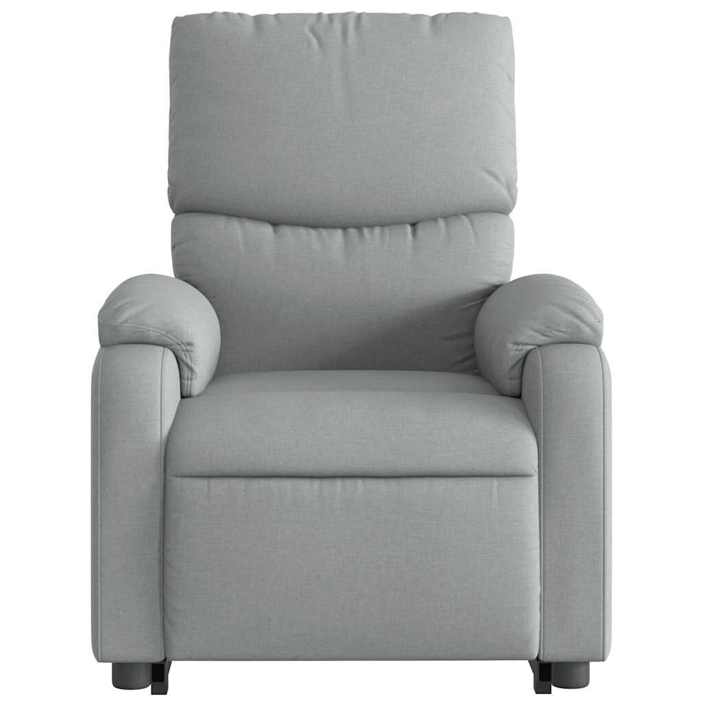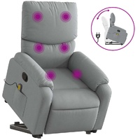 Sit back and drift away in this highly comfortable stand up massage recliner chair! Power lift function: This recliner chair for the elderly is equipped with an electric motor for the lifting-up function. Thanks to the function that pushes the entire chair up, you can easily stand without stressing your back and knees with a simple press of the button.Manual reclining function: This reclining chair has a handle on the right side. You can manually adjust the footrest and the backrest to any position as per your comfort with a simple pull of the handle. This feature allows for a maximum tilt of 135 degrees. Additionally, the backrest can go quickly back to the original place with an easy pull of the handle.Vibration function: The featured 6 massage points let you experience a better-targeted massage. Additionally, the included hand control allows you to pick different massage programs. The massage function is powered by the USB connector that requires a certified 5V USB power source (not included).Comfortable seat experience: The thickly padded seat, backrest, and wide armrests covered in fabric provide a cosy and warm sensation, making you feel embraced while seated. The fabric features a simple and clean look and is breathable and durable.Convenient side pocket: This armchair has a side pocket for your remote control or keeping your essential items within easy reach.Solid and stable frame: The frame made of wood and metal provides a strong structure and stability. This reclining armchair is comfortable and durable.