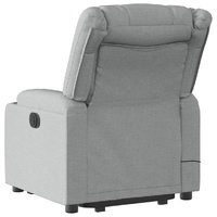 Sit back and drift away in this highly comfortable stand up massage recliner chair! Power lift function: This recliner chair for the elderly is equipped with an electric motor for the lifting-up function. Thanks to the function that pushes the entire chair up, you can easily stand without stressing your back and knees with a simple press of the button.Manual reclining function: This reclining chair has a handle on the right side. You can manually adjust the footrest and the backrest to any position as per your comfort with a simple pull of the handle. This feature allows for a maximum tilt of 135 degrees. Additionally, the backrest can go quickly back to the original place with an easy pull of the handle.Vibration function: The featured 6 massage points let you experience a better-targeted massage. Additionally, the included hand control allows you to pick different massage programs. The massage function is powered by the USB connector that requires a certified 5V USB power source (not included).Comfortable seat experience: The thickly padded seat, backrest, and wide armrests covered in fabric provide a cosy and warm sensation, making you feel embraced while seated. The fabric features a simple and clean look and is breathable and durable.Convenient cup holders and side pocket: This armchair has two convenient cup holders for your drinks and a side pocket for your remote control or keeping your essential items within easy reach.Solid and stable frame: The frame made of wood and metal provides a strong structure and stability. This reclining armchair is comfortable and durable.