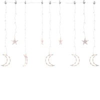 The star and moon fairy light is perfect for use as a lighting addition to any decorative project. It is suitable for Christmas, parties, weddings and other holidays. The curtain light is equipped with 138 energy-saving LEDs, creating a magical lighting performance. It has 8 different lighting effects: combination mode, waves, sequential mode, slowly glowing mode, flashing, slowly fading mode, twinkling and continuous lighting. The included remote control allows you to adjust the lighting modes easily and conveniently. It is a great decorative accessory to illuminate indoor and outdoor spaces. Note: The included USB is not waterproof so this part has to avoid the water, but thanks to the 3m cable the Christmas decoration can be used outdoors as the cable and product are waterproof. The product has a USB connector, but the certified 5V USB power source is not included.