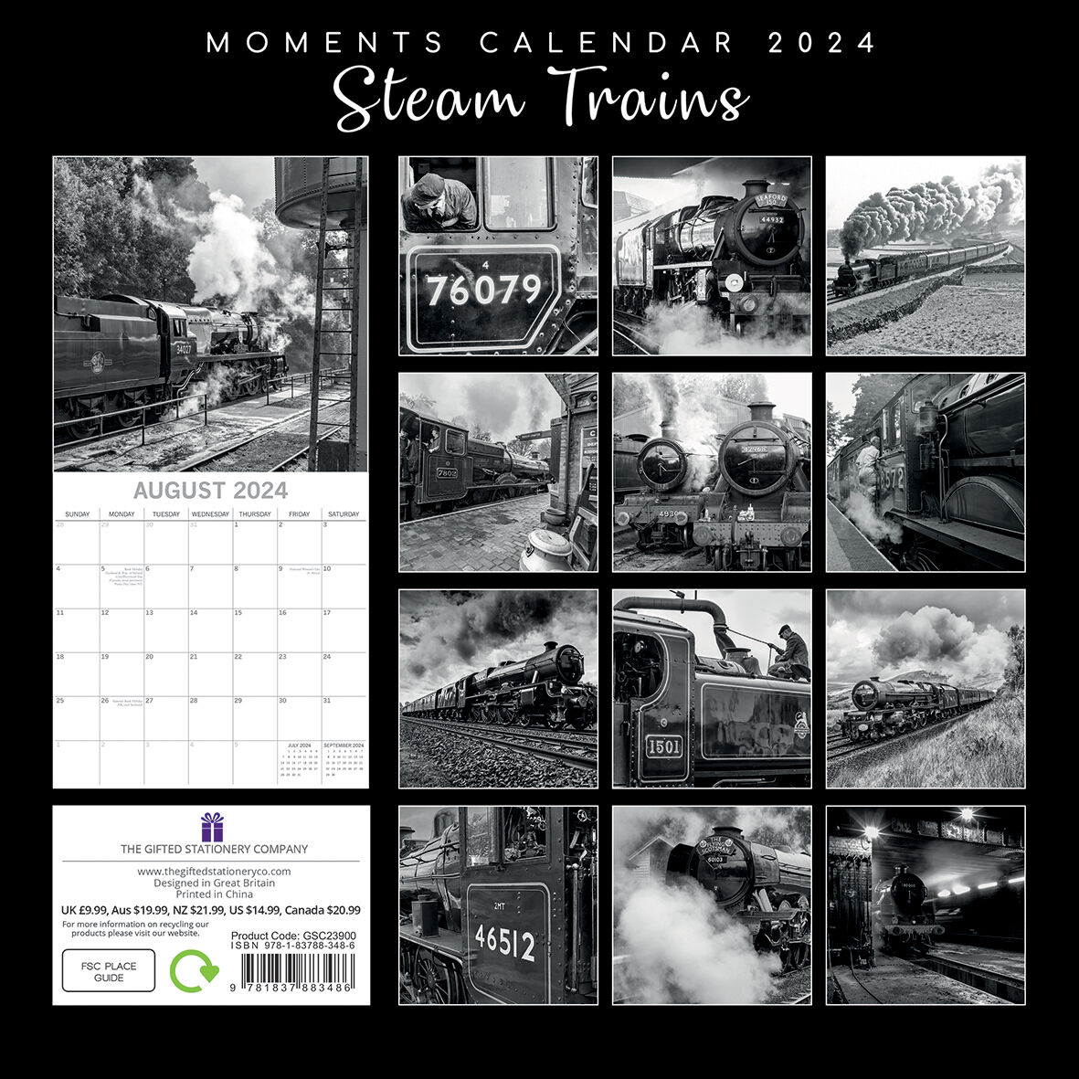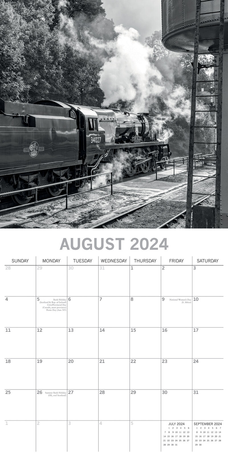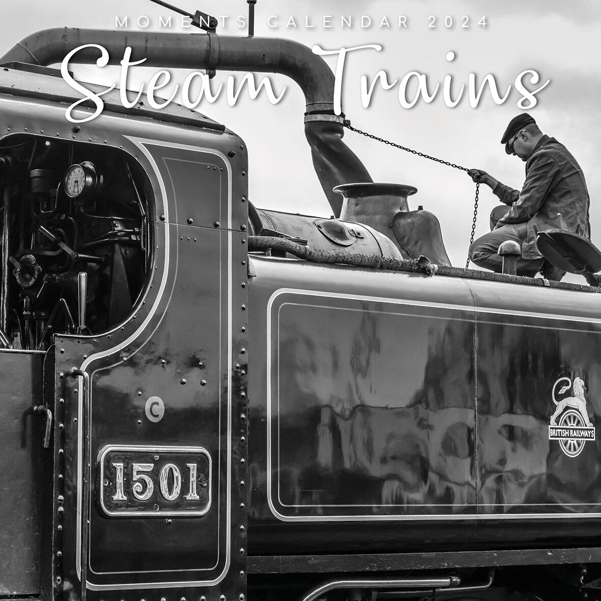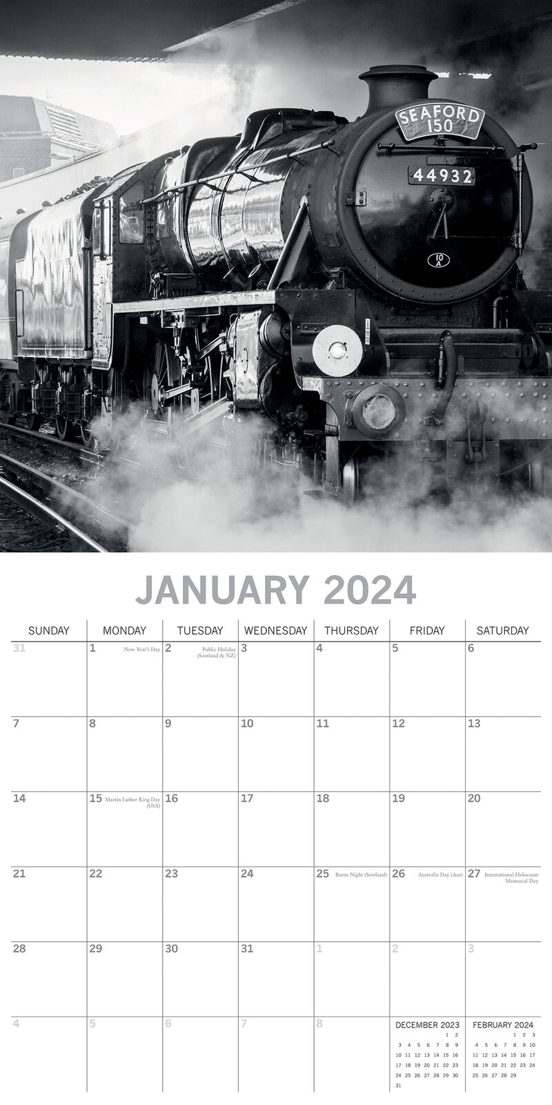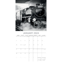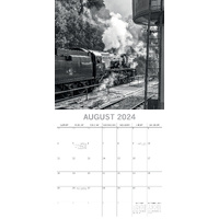 Steam Trains - 2024 Square Wall Calendar 16 Month Black & White Planner New Year