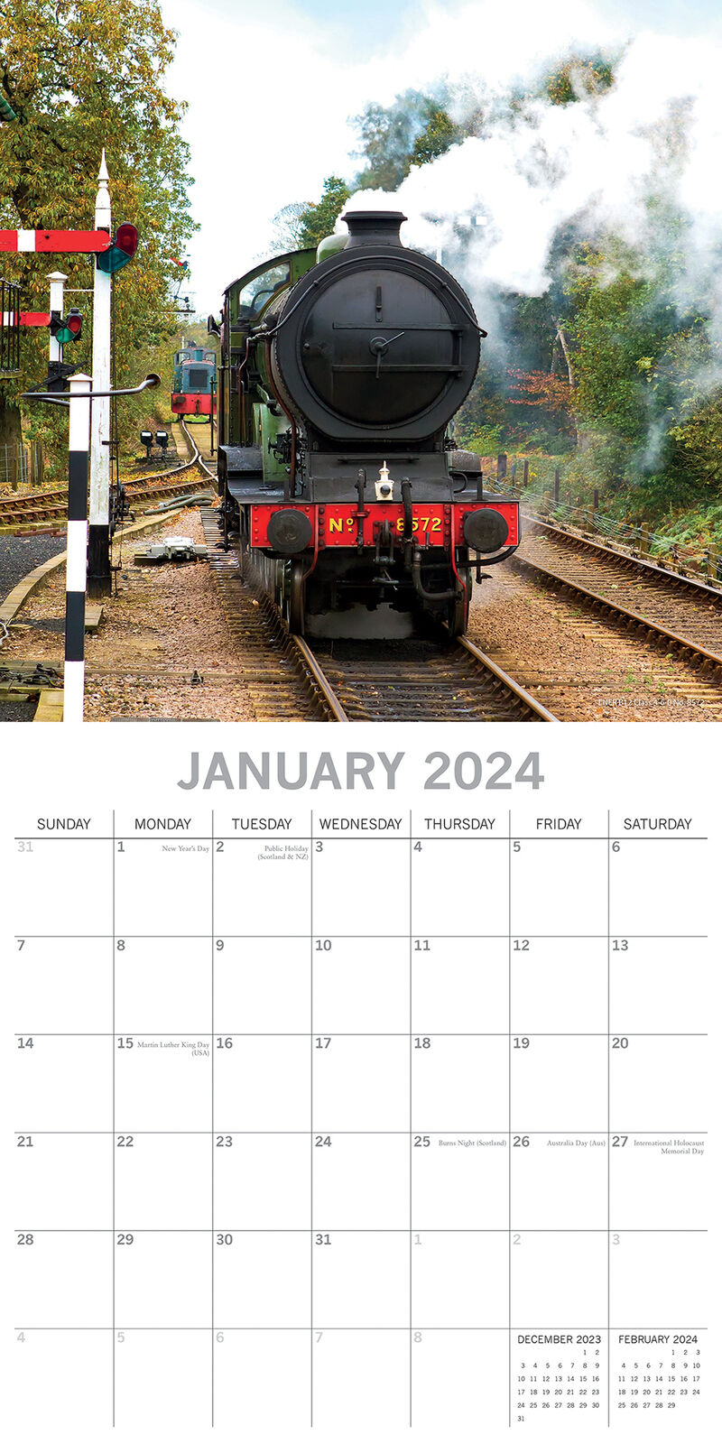 Steam Trains 2024 Square Wall Calendar 16 Months Planner Christmas New Year Gift