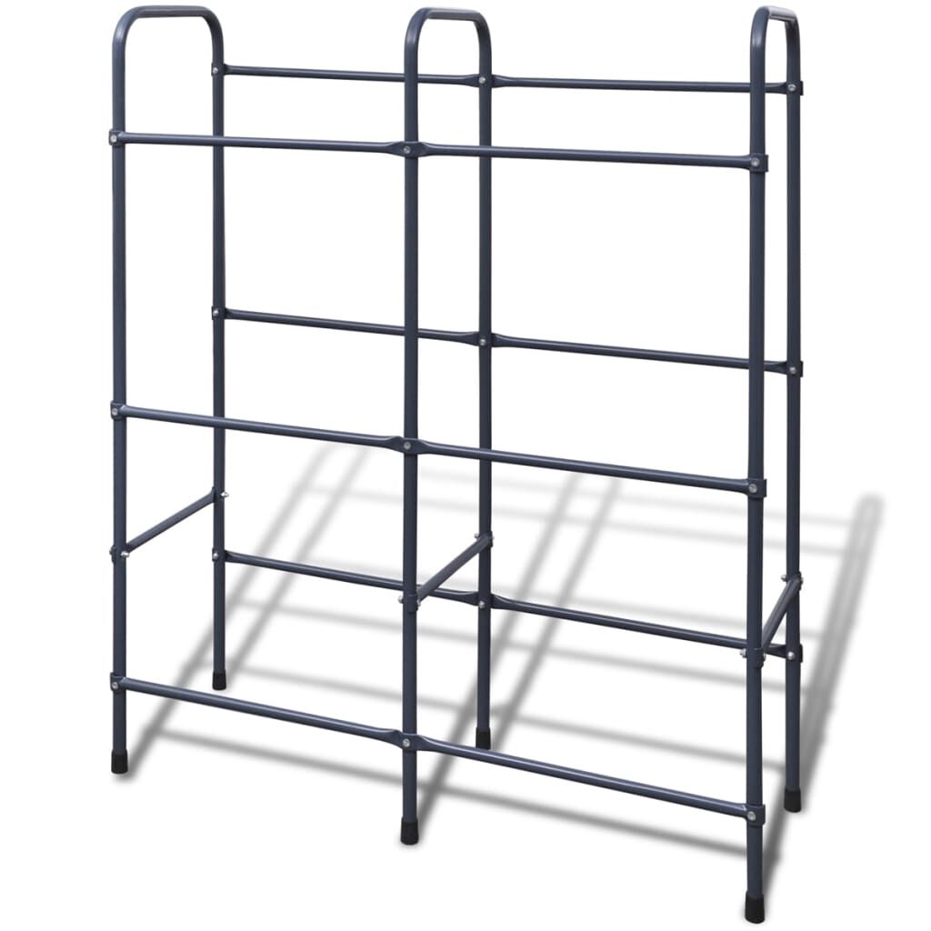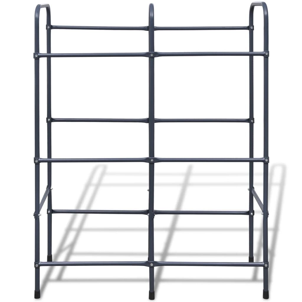 This convenient and space-saving crate shelf will be ideal for storing foldable grocery crates and drink crates. It will make a great addition to any household or company because there are crates that need storing almost everywhere. The inclined design allows for easy access to the contents of the crates, and allows you to see what is inside them at a glance. This crate stand is suitable for 6 folding grocery crates, Euro drink crates or standardised crates. The shelf is made of strong steel, and built to last. The plastic non-slip feet are designed to keep the rack from skidding.