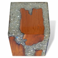 This unique wooden stool, made of solid teak with a transparent resin decoration, exudes a rustic charm and is a real eye-catcher. The stool can also be used as a footrest, side table, etc. The stool is fully handmade and the craftsmanship adds to its luxurious appearance. Important note: As wood is a natural product, the colours and grain patterns vary from piece to piece, making each of our stools unique and different from the next. The delivery is random, ensuring the exclusivity and individuality of your product.