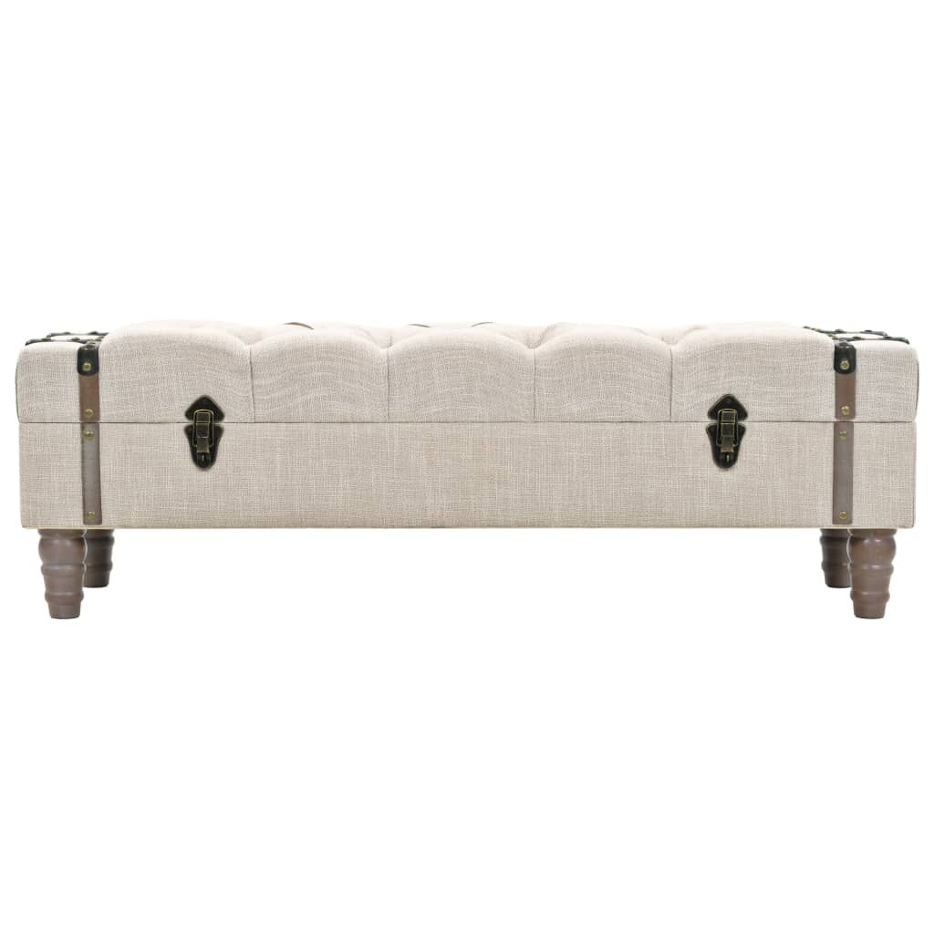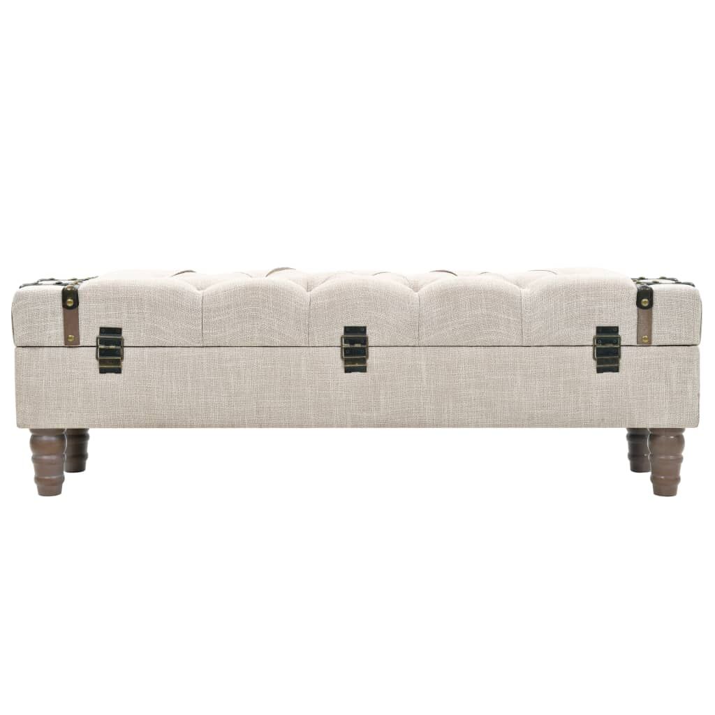 Add a vintage touch to your interior design with our storage bench. The storage box is made of solid fir wood. It has a padded seat that is upholstered in a modern fabric and has sturdy steel legs. There is ample space for keeping a host of different items out of sight yet within reach. Thanks to its durable handle, the trunk bench can also be easily moved and placed in any room. Assembly of this item is easy.