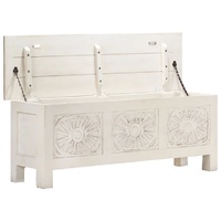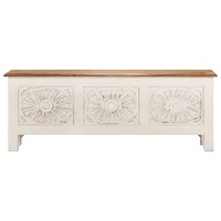 This wooden storage box with exquisite carved patterns will make a timeless addition to your interior. This TV cabinet is made of solid acacia wood that has been given a white finish to endow it a beautiful look and bright colour. The craftsmanship and the graceful wood grains make every piece of furniture extraordinary and slightly different from the next. Additionally, the perfect craftsmanship guarantees that every step of the process is carried out with the greatest care, be it polishing, painting and lacquering. The graceful hand-carved patterns on the box front surface add to the cabinet's beauty. This sideboard features 1 cabinet, providing ample space for keeping your multimedia devices, books, as well as various items neatly organised. Important note: The grains vary from piece to piece, making each piece unique. The delivery is random, ensuring the exclusivity and individuality of your product.