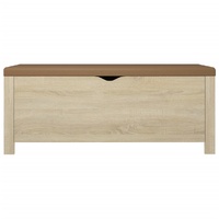 This storage box designed for both sitting and storing will surely be an eye-catcher in your home decor. Sturdy construction: The engineered wood is of exceptional quality with a smooth surface and features strength, stability and resistance to moisture. Ample storage space: The storage trunk has a large storage space for organising clothes, toys, cushions, books, or other personal belongings. Comfortable seating: Experience the ultimate comfort with the integrated thickly padded seat cushion when you sit on it. Easy to clean: The storage bench is easy to clean with a damp cloth.