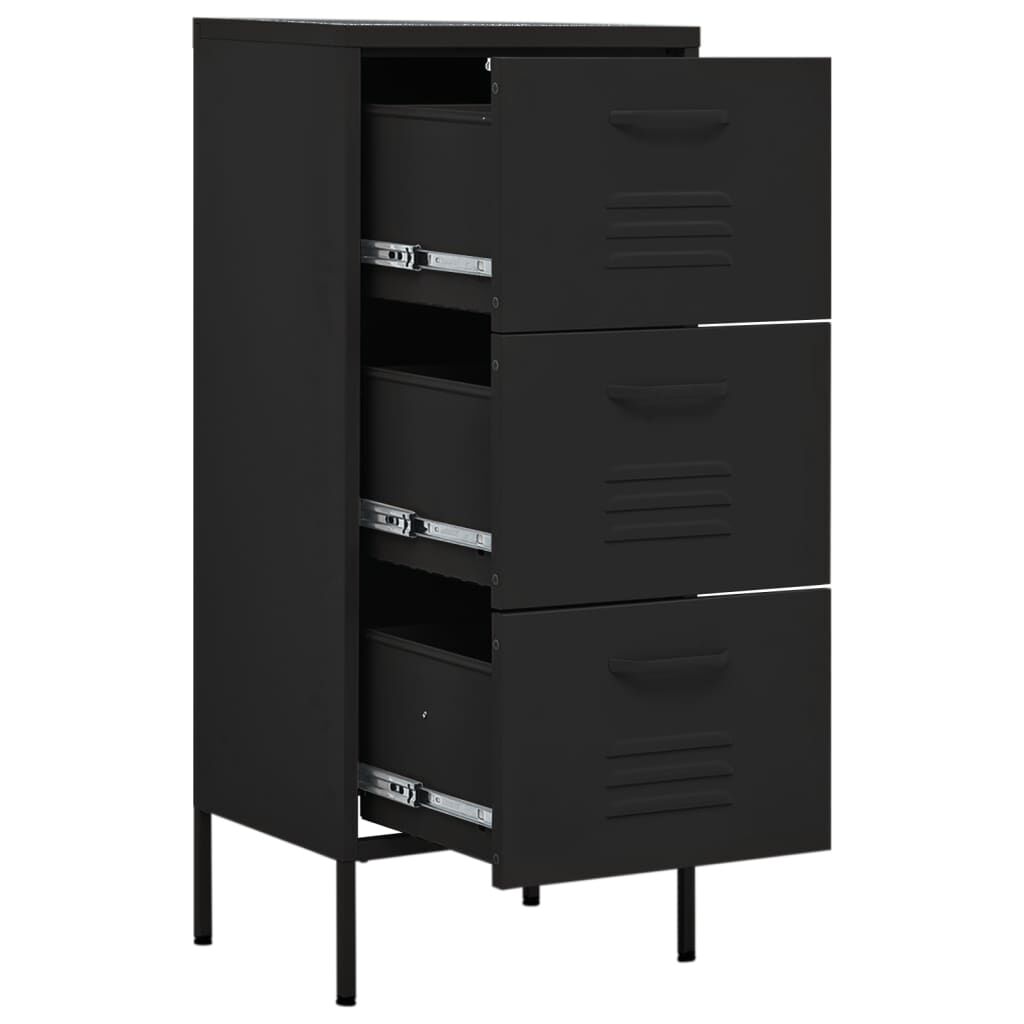 This storage cabinet with practical design is a real eye-catcher for your home decor. This side cabinet, featuring a steel construction, is sturdy and durable. There are levellers on the bottom to adjust the height according to your needs. The drawers can be fully extended and are ideal for keeping all kinds of smaller items organised and within reach. Drawers with ballbearing runners ensure smooth opening and closing, even under increased load.