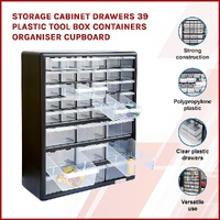 $69.55This is the Organiser you need to help you create a stress-free, tidy, and neat work place or hobby area. With 39 Plastic Tool Boxes contained in this one organiser, you'll find a place for every small item in your workspace. It can even be attached to the wall or another surface. Use labels to personalise the clear drawers on this black cabinet. Declutter any space simply and effectively with this Storage Cabinet Cupboard.