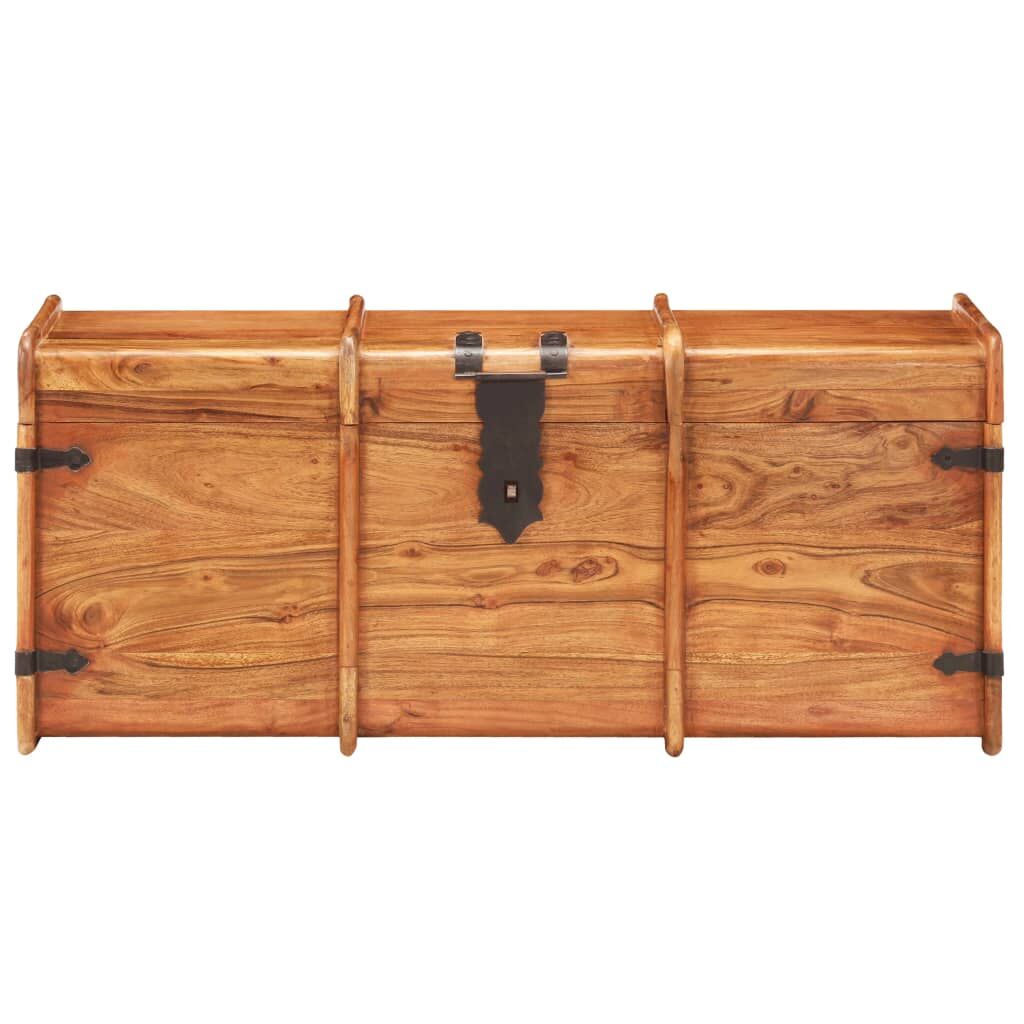 The wooden storage chest adds a simplistic look to your home decor and provides ample storage space for clothes, magazines, books, tools and other accessories. This storage cabinet is made of solid acacia wood, making it stable and durable. It has a latch on the front and two handles on the side for lifting the chest. This storage box, with a stable flat top, can also be used to display your items. The craftsmanship and the beautiful wood grains make every piece of furniture unique and slightly different from the next. Important note: Colours and grains may vary from piece to piece, making each piece unique. The delivery is random, ensuring the exclusivity and individuality of your product.