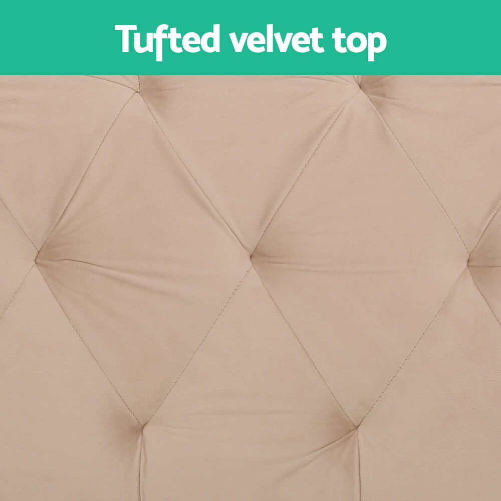 $125.01Look no further than the Noel Storage Bench from Artiss for storage with style and functionality. Constructed from a solid pine and fir wood frame with woven panels, the bench suits homes with a rustic, boho or Hampton's aesthetic. The tufted velvet top is filled with high-resilience foam for a comfortable, durable seat. Detach the top lid and find a generous storage space to fit clothes, toys, pillows, blankets and more. The sturdy metal legs keep the bench standing tall under pressure. The seat can support up to 100kg, while the storage compartment will support up to 80kg. Strong, stable and long-lasting, the Noel Storage Bench is the perfect solution to your living room storage woes. Get yours today.