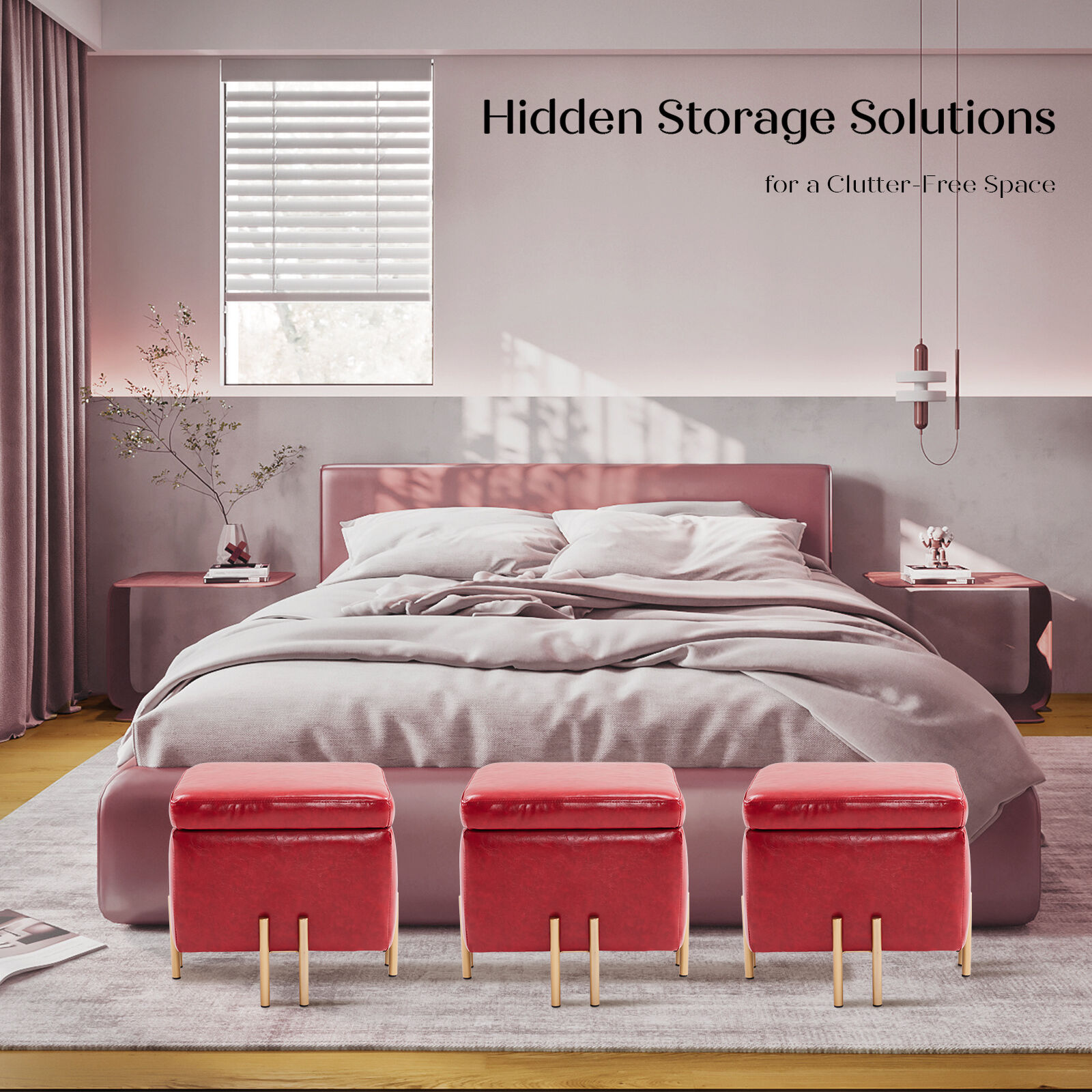 $65.79La Bella Storage Ottoman Cube Seat 45cm Chest Couch Tuffet Foot Stool PU Leather - Red