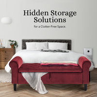 $269.77La Bella Storage Ottoman Bench Seat 132cm Chest Arm Couch Stool Velvet - Red