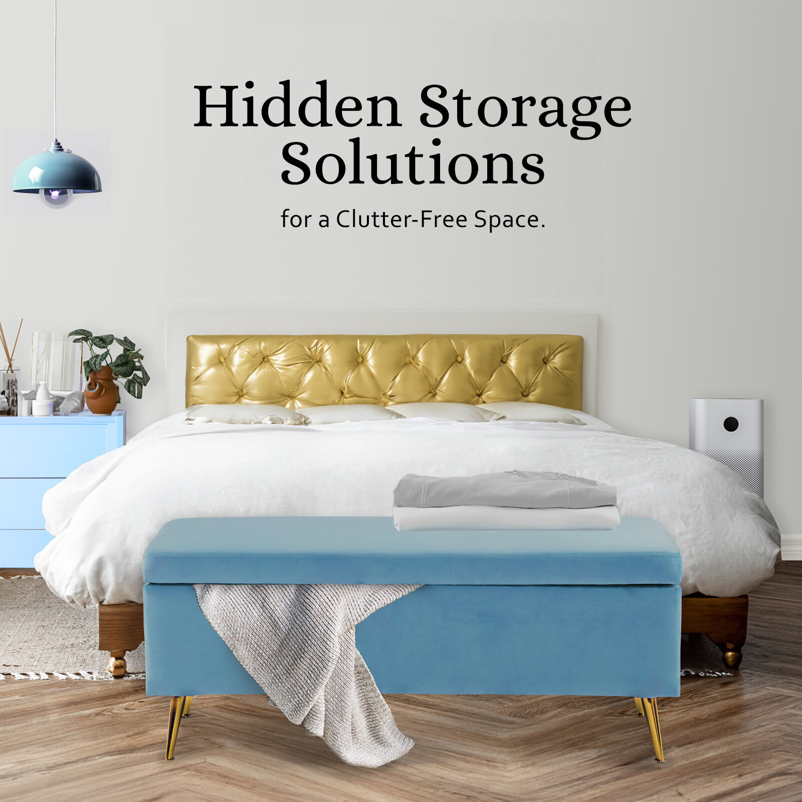 With sleek metal legs for stability, lift the lid to find a roomy interior - ideal for storing blankets and pillows discreetly. This Ottoman Storage is more than practical; it's versatile, serving as a comfy footrest or extra seating for guests.