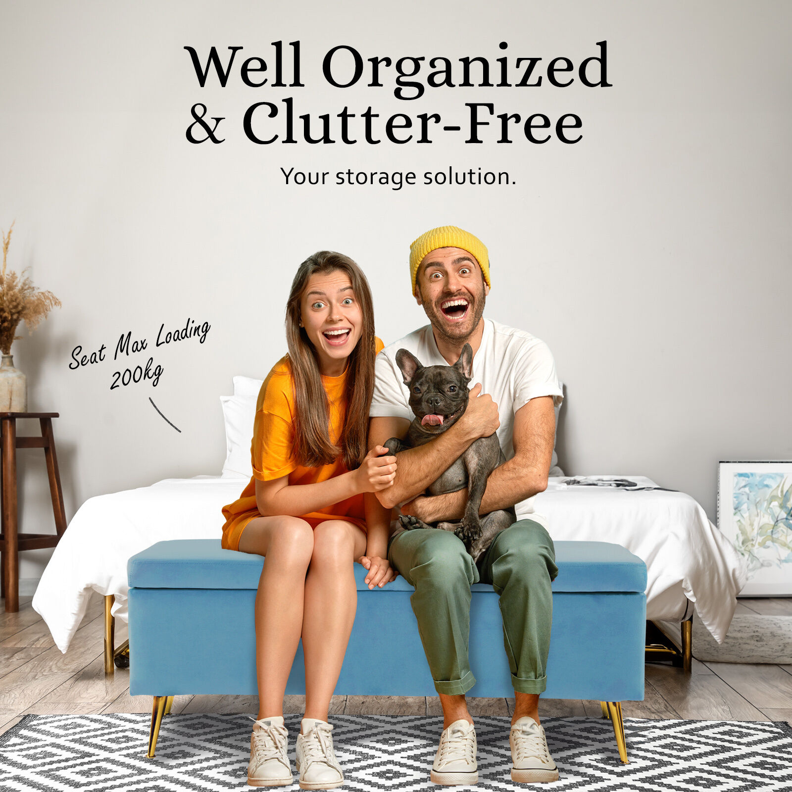 $144.75La Bella Storage Ottoman Bench Seat 110cm Chest Couch Stool Velvet - Ocean Blue