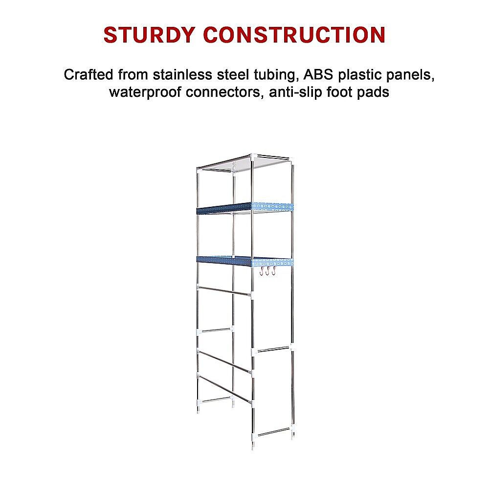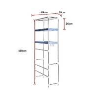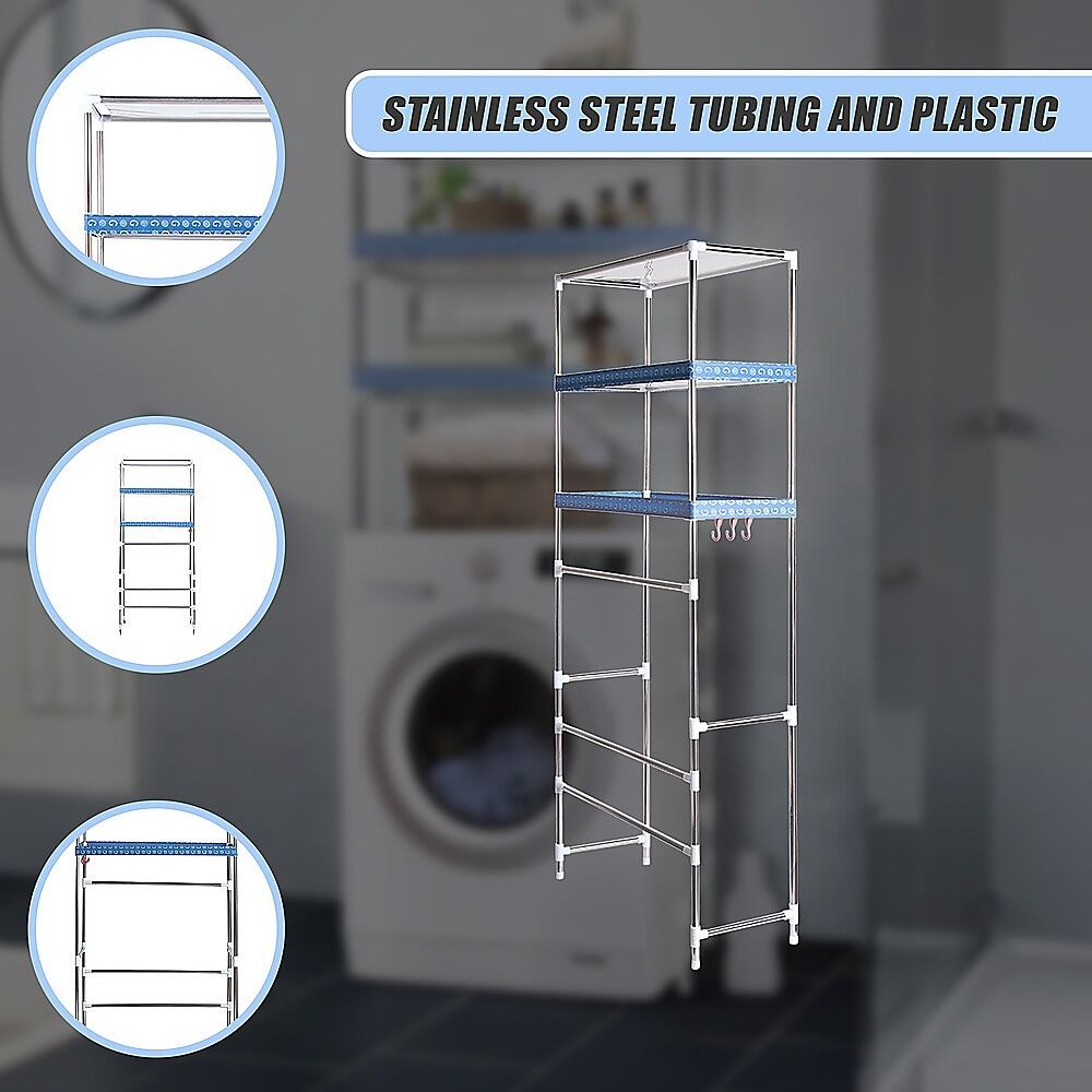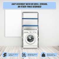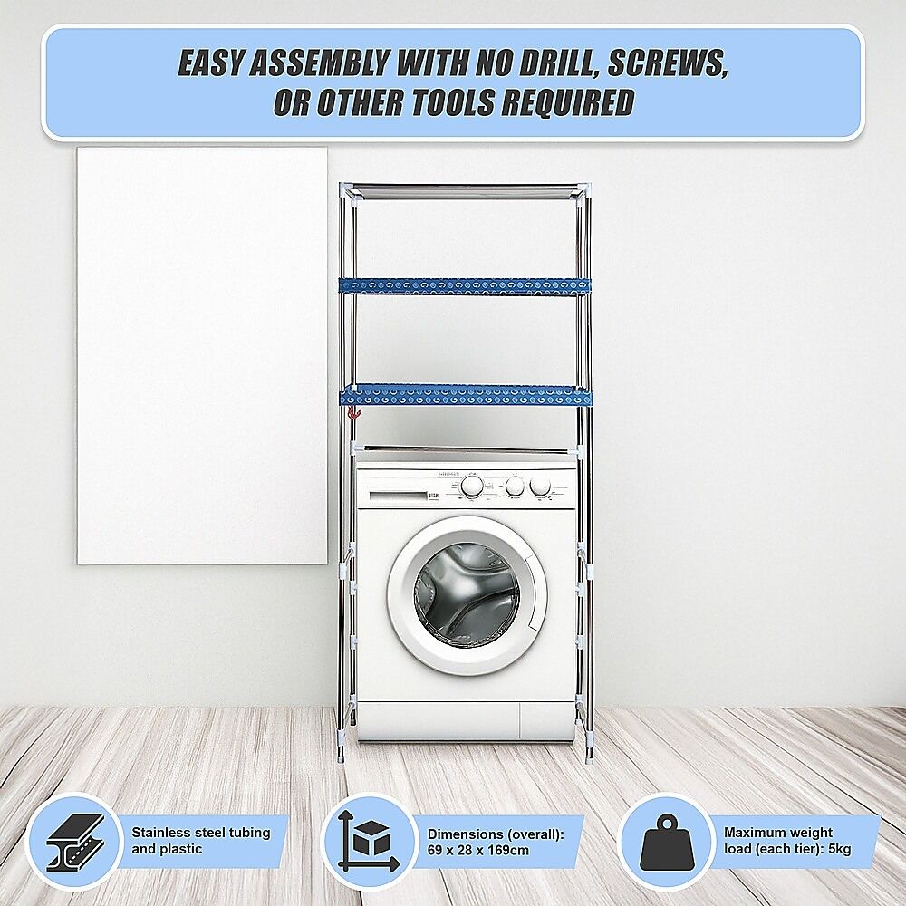 $50.75If storage space is at a premium in your laundry room, this three-tier laundry storage rack by Randy Travis Machinery is the perfect solution. Fitting right over your washing machine, it takes up no extra space, but provides three generous levels of storage space for laundry supplies, folded clothes, towels, baskets, or whatever you need to store. With a maximum load per tier of five kilogrammes, you can store a wide range of items and supplies.