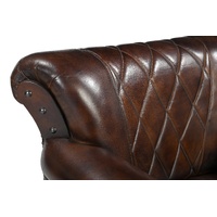 Completely upholstered from genuine chocolate leather, the arm chair also features an exposed weaved stitching along its middle for added comfort. Tradition and character also come together with the studded detailing, an ode to earlier marks of craftsmanship.