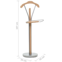 This high-quality clothing rack will be a great addition to your office or bedroom! It helps to keep your suits, coats, jackets, ties or trousers tidy and crease free. The stand is made of MDF and has a steel frame. It is lightweight and easy to move around in the house. The base construction also provides stability and sturdiness for the rack. The design of top coat hanger prevents your suits from getting stretched in the shoulders. It comes with a small table to keep your glasses, keys, wallets or watches well organised and within reach. The rack is easy to assemble.