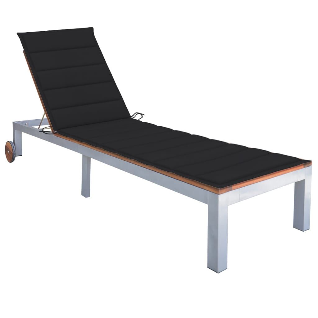 Enjoy the sun while relaxing on this wooden sunlounger! It is perfect for sunbathing, lounging, or just taking a nap in your garden, patio, or balcony. This sunbed is made of solid acacia wood and galvanised steel, making it sturdy and stable. The backrest is 4-level adjustable so that you can lock the lounger into the desired position and find the most comfortable position. This garden sun lounger can be easily moved around the house with equipped wheels. The cushion adds extra comfort for you while lounging. Each cushion has two sets of ropes to fix it on the lounge bed tightly.