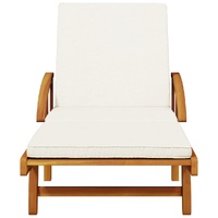 Relax and enjoy the outdoors in these comfortable sun loungers! Robust and stable: Solid acacia wood is known for its strength and durability. Its diverse colours and unique grain patterns give it an attractive appearance. With good stability and resistance to weathering, it is ideal for crafting indoor and outdoor furniture.Manual reclining function: This reclining chair is specially designed with 5 reclining positions so that you can adjust the backrest and footrest manually as per your comfort.Comfortable seat experience: This outdoor furniture, complete with thickly padded cushions, offers a comfortable seating experience.Convenient pull-out table: This outdoor furniture features a convenient pull-out table, providing a convenient spot to keep your essentials within easy reach.Well-ventilated and pooling prevention: The slatted design promotes optimal airflow and effectively prevents water pooling, ensuring a dry and comfortable seat.Removable and washable cover: These seat cushions feature removable covers for easy washing and maintenance.Easy movement: You can move the outdoor lounger around easily, thanks to its lightweight design and wheels. Good to know:To make sure your outdoor furniture stays beautiful, we recommend protecting it with a waterproof cover.