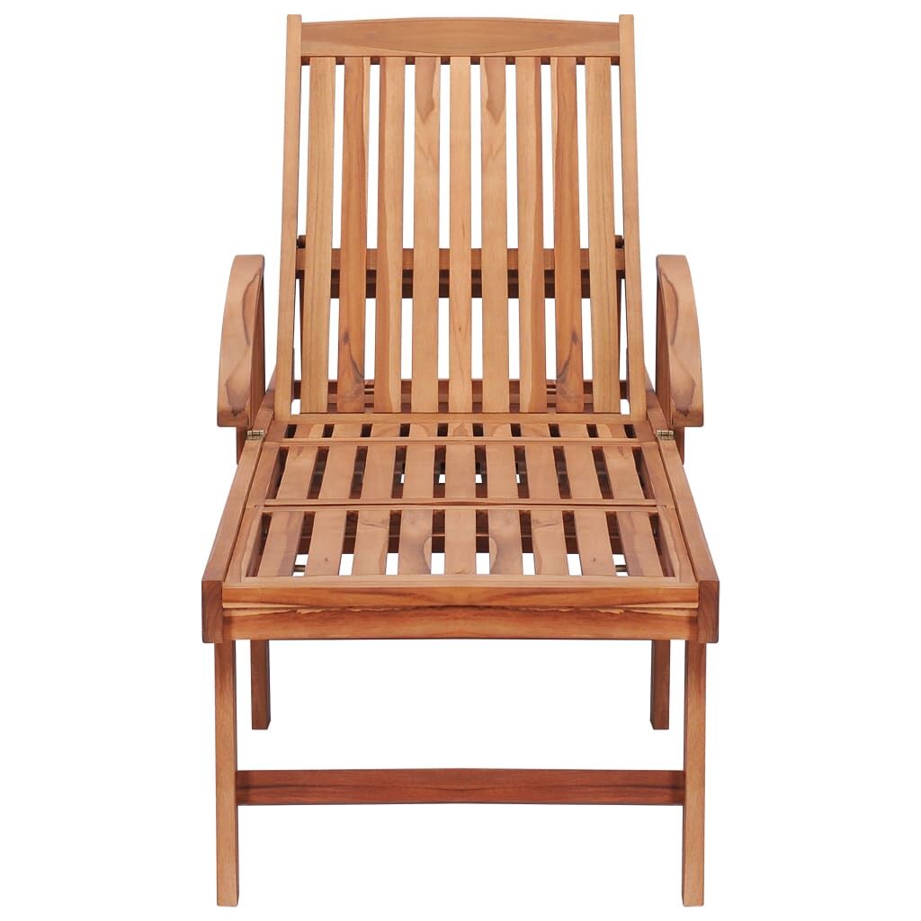 The classic wooden sun lounger with an attractive slatted design, adds a touch of rustic charm to your garden, patio, pool deck or any outdoor space. Constructed from extremely durable teak hard wood, this piece of teak furniture has been seasoned, kiln dried and then fine sanded to give a very smooth appearance. Teak wood is known for its exceptional strength and weather resistance, making it far more suitable for garden furniture than any other kind of wood. Teak wood is the perfect choice if you want to purchase a long lasting piece of garden furniture. The daybed is equipped with 2 wheels, which can be easily moved around. The backrest can be adjusted in 4 positions, from sitting fully upright to lying completely flat. The seat and backrest slats offer great support and comfort as well, and two armrests provide a place to rest your arms. Additionally, the included cushion is more than a practical addition; it also has a decorative function. Note: In order to extend the life of your outdoor furniture, we recommend you to protect it with a waterproof cover.