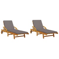 Relax and enjoy the outdoors in these comfortable sun loungers! Robust and stable: Solid acacia wood is known for its strength and durability. Its diverse colours and unique grain patterns give it an attractive appearance. With good stability and resistance to weathering, it is ideal for crafting indoor and outdoor furniture.Manual reclining function: This reclining chair is specially designed with 5 reclining positions so that you can adjust the backrest and footrest manually as per your comfort.Comfortable seat experience: This outdoor furniture, complete with thickly padded cushions, offers a comfortable seating experience.Convenient pull-out table: This outdoor furniture features a convenient pull-out table, providing a convenient spot to keep your essentials within easy reach.Well-ventilated and pooling prevention: The slatted design promotes optimal airflow and effectively prevents water pooling, ensuring a dry and comfortable seat.Removable and washable cover: These seat cushions feature removable covers for easy washing and maintenance.Foldable design: The table can be easily folded away when not in use, for easy storage and transportation.Easy movement: You can move the outdoor lounger around easily, thanks to its lightweight design and wheels. Good to know:To make sure your outdoor furniture stays beautiful, we recommend protecting it with a waterproof cover.