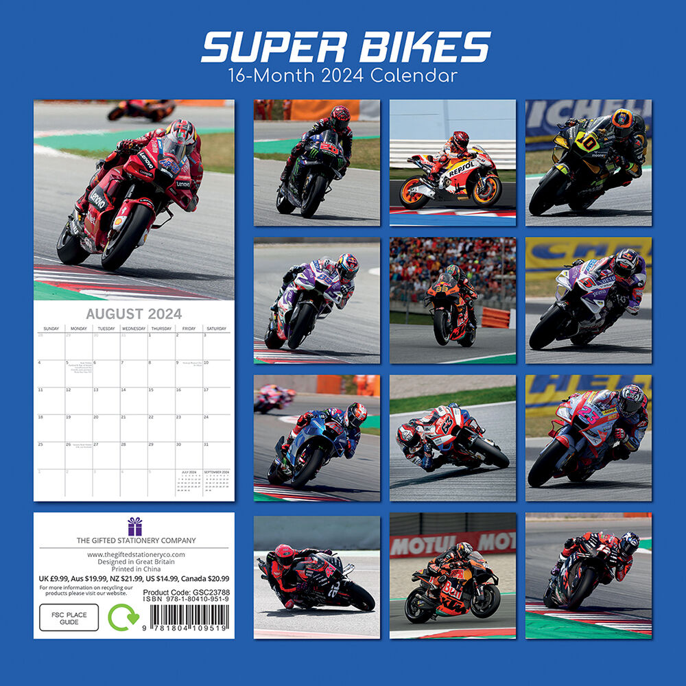 Super Bikes - 2024 Square Wall Calendar 16 Month Planner Christmas New Year Gift