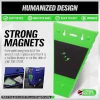 • Powerful rare-earth magnets hold the wrench rack in place, whether it's in a toolbox drawer or on the side of tool chest.