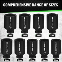 • Contains 9pcs 1/2-Inch deep impact socket,29MM,30MM,31MM,32MM,33MM,34MM,35MM,36MM,38MM,With laser marking.