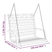 This wooden swing bench is the perfect choice if you're looking for relaxation and enjoyment in outdoor spaces. This swing seat is made of solid bent wood, making it stable, sturdy and also suitable for daily outdoor use. The teak finish gives it a dark wood look. The armrests are ergonomically designed, bringing you optimum comfort while seating. Please note: Wood is a natural product and may show slight imperfections. The swing frame is not included. It's recommended the swing chair hang on large trees, stands and other solid objects. Note: 126x63x92 cm is the overall size not the seat size.
