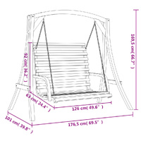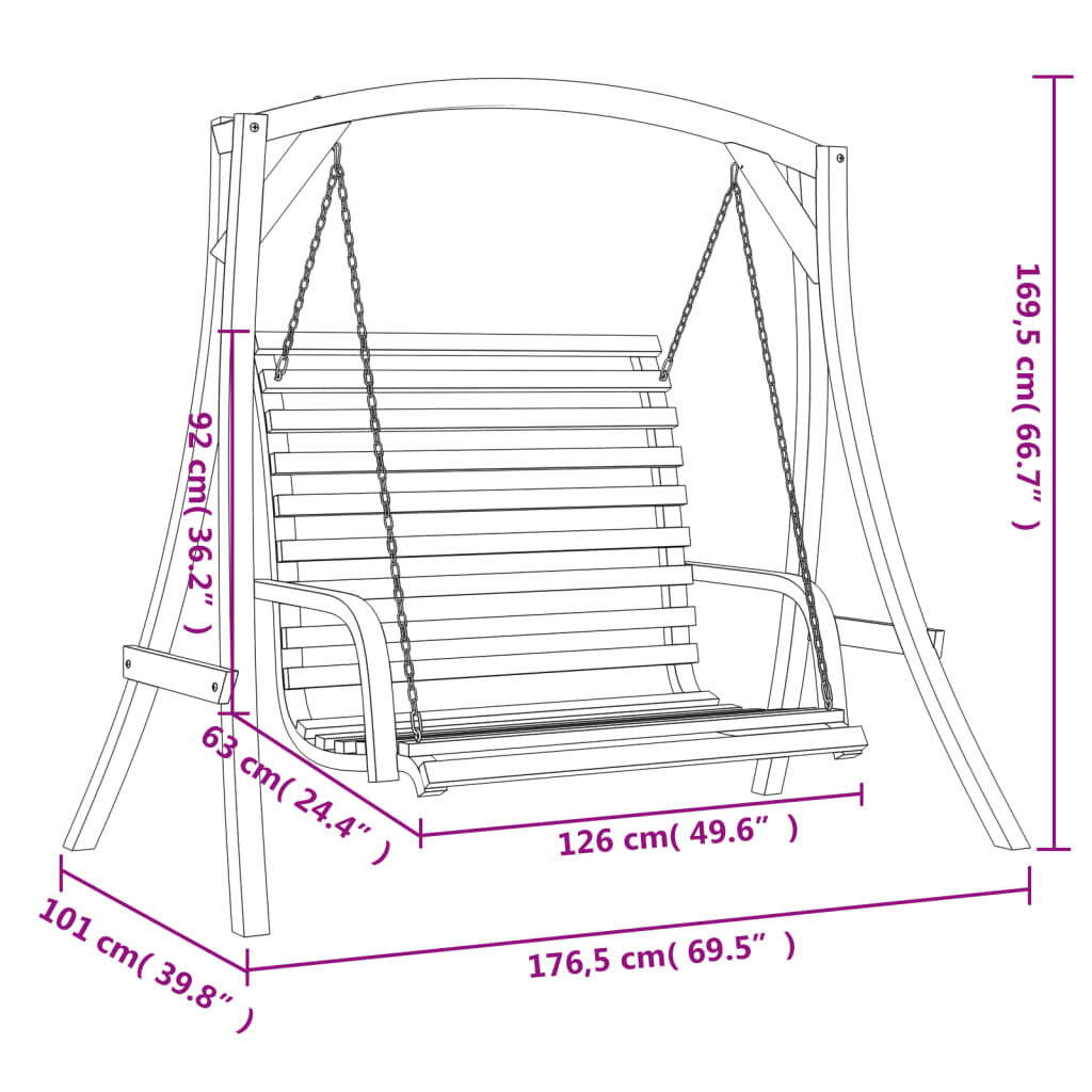 This wooden swing bench is the perfect choice if you're looking for relaxation and enjoyment in outdoor spaces. Solid spruce wood frame: This hanging bench is made of solid spruce wood. Solid spruce wood is a lightweight, stable, rot-resistant softwood. It has a fine, even texture, and a consistently straight grain. The teak finish gives it a dark wood look.Ergonomic backrest and armrests: The backrest and armrests of the garden swing bench are ergonomically designed, bringing you optimum comfort while sitting.Soothing rocking motion: Relax by sitting comfortably while enjoying a calming, gentle rocking motion. Good to know:The wood is a natural product and can show imperfections.