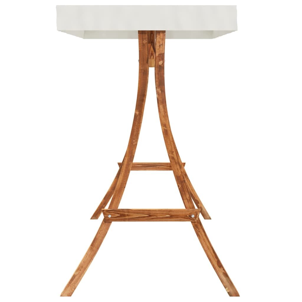 This wooden swing bench with canopy is the perfect choice if you're looking for relaxation and enjoyment in outdoor spaces. Solid spruce wood frame: This hanging bench is made of solid spruce wood. Solid spruce wood is a lightweight, stable, rot-resistant softwood. It has a fine, even texture, and a consistently straight grain. The teak finish gives it a dark wood look.Ergonomic backrest and armrests: The backrest and armrests of the garden swing bench are ergonomically designed, bringing you optimum comfort while sitting.Soothing rocking motion: Relax by sitting comfortably while enjoying a calming, gentle rocking motion.Canopy design: The bench swing is equipped with a canopy to protect you from direct sunlight when you read or relax on summer days. Good to know:The wood is a natural product and can show imperfections.