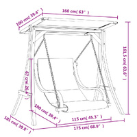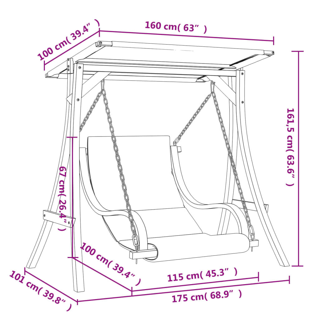 This wooden swing chair with cushion and canopy is the perfect choice if you're looking for relaxation and enjoyment in outdoor spaces. Solid spruce wood frame: This hammock chair is made of solid spruce wood. Solid spruce wood is a lightweight, stable, rot-resistant softwood. It has a fine, even texture, and a consistently straight grain. The teak finish gives it a dark wood look.Ergonomic backrest and armrests: The backrest and armrests of the hanging chair are ergonomically designed, bringing you optimum comfort while sitting.Soothing rocking motion: Relax by sitting comfortably while enjoying a calming, gentle rocking motion.Comfortable seat: The soft cushion of the hammock swing provides the ultimate seating comfort.Canopy design: The outdoor swing chair is equipped with a canopy to protect you from direct sunlight when you read or relax on summer days. Good to know:The wood is a natural product and can show imperfections.