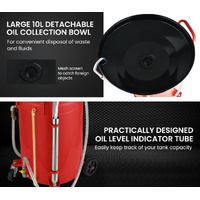 It features a large 10L detachable oil collection pan with a height adjustable telescopic lifting shaft that easily adjusts to fit different requirements. The commercial-grade T-REX can be easily positioned under the car, as well as being suitable for use in a variety of other automotive workshop applications.
