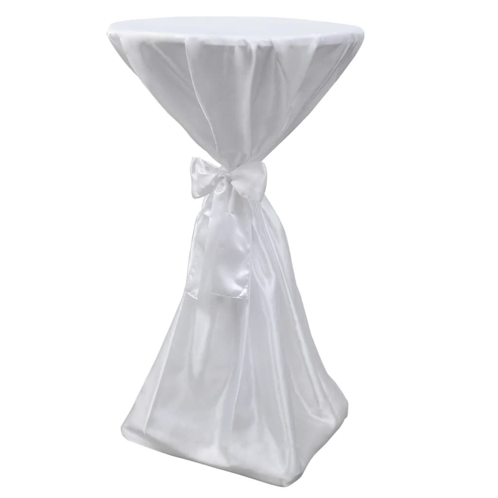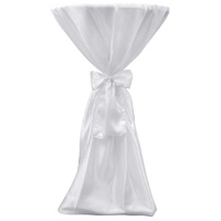 This white table cover with a full-length cut is suitable for round bar tables in weddings, parties, banquets or other occasions. The cover is tied with a supplied ribbon and you can make a bowknot to make it more elegant. The cover is made from classy satin fabric, which is easy to clean. Delivery includes 2 pcs of table covers.