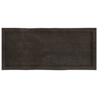 Give a new life to your table with this wooden table top. It is an excellent solution for freshening up your table at home or in a commercial setting. Solid oak wood: The tabletop is made of solid oak wood, which is a beautiful natural material. Oak wood has a medium brown colour and a dense grain, contributing to its unique look.Versatile applications: The replacement table top can be combined with different bases according to your needs.Treated surface: The replacement board has been treated with dark paint, so it is ready for use as an additional finish is not required.Handmade with live edge: The DIY board is meticulously handcrafted, showcasing a live edge that adds to its natural charm. Due to that the knots, cracks, slightly curved shapes, and colour tones are part of the oak wood. Every piece has its own unique character to display. The delivery is random, ensuring the exclusivity and individuality of your product. Good to know:As a natural product, wood may show knots and imperfections that we fill with black fillings to ensure a smooth appearance.