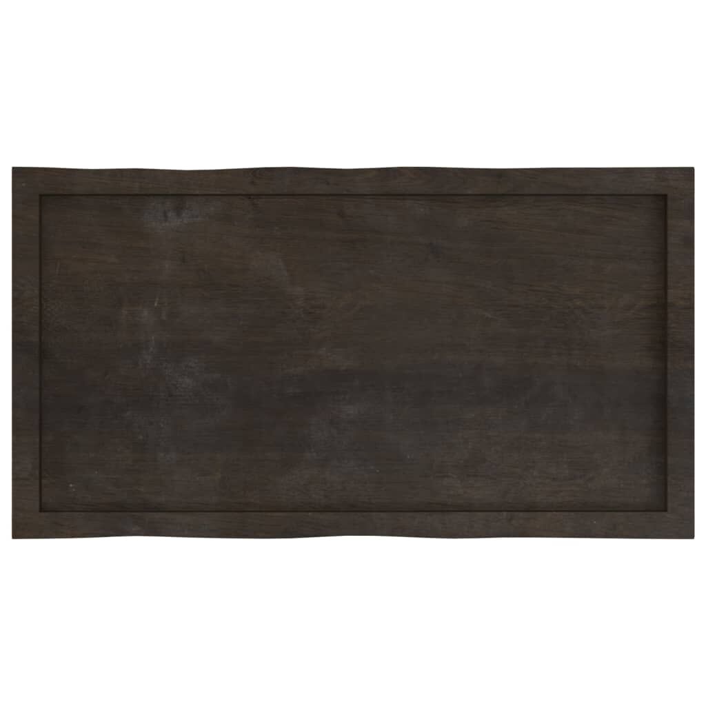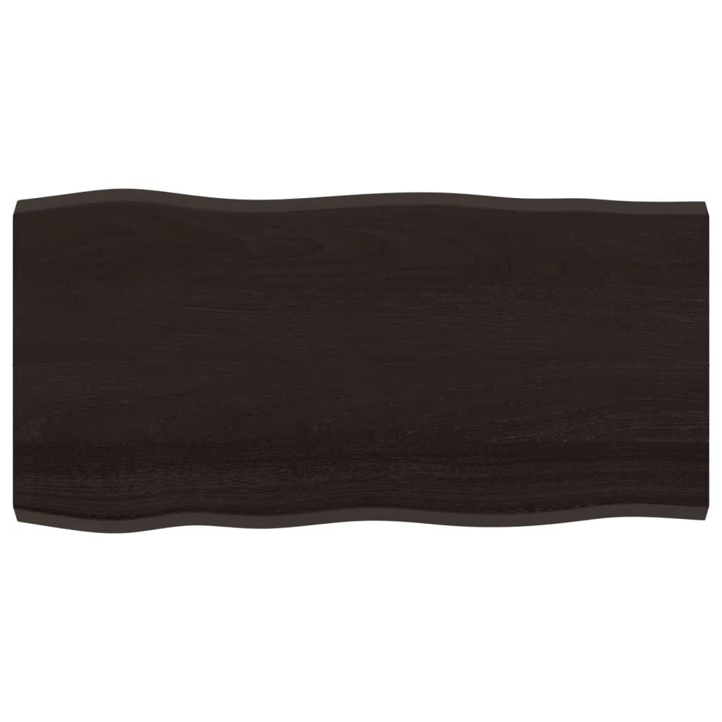 Give a new life to your table with this wooden table top. It is an excellent solution for freshening up your table at home or in a commercial setting. Solid oak wood: The tabletop is made of solid oak wood, which is a beautiful natural material. Oak wood has a medium brown colour and a dense grain, contributing to its unique look.Versatile applications: The replacement table top can be combined with different bases according to your needs.Treated surface: The replacement board has been treated with dark paint, so it is ready for use as an additional finish is not required.Handmade with live edge: The DIY board is meticulously handcrafted, showcasing a live edge that adds to its natural charm. Due to that the knots, cracks, slightly curved shapes, and colour tones are part of the oak wood. Every piece has its own unique character to display. The delivery is random, ensuring the exclusivity and individuality of your product. Good to know:As a natural product, wood may show knots and imperfections that we fill with black fillings to ensure a smooth appearance.