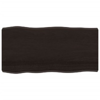 Give a new life to your table with this wooden table top. It is an excellent solution for freshening up your table at home or in a commercial setting. Solid oak wood: The tabletop is made of solid oak wood, which is a beautiful natural material. Oak wood has a medium brown colour and a dense grain, contributing to its unique look.Versatile applications: The replacement table top can be combined with different bases according to your needs.Treated surface: The replacement board has been treated with dark paint, so it is ready for use as an additional finish is not required.Handmade with live edge: The DIY board is meticulously handcrafted, showcasing a live edge that adds to its natural charm. Due to that the knots, cracks, slightly curved shapes, and colour tones are part of the oak wood. Every piece has its own unique character to display. The delivery is random, ensuring the exclusivity and individuality of your product. Good to know:As a natural product, wood may show knots and imperfections that we fill with black fillings to ensure a smooth appearance.