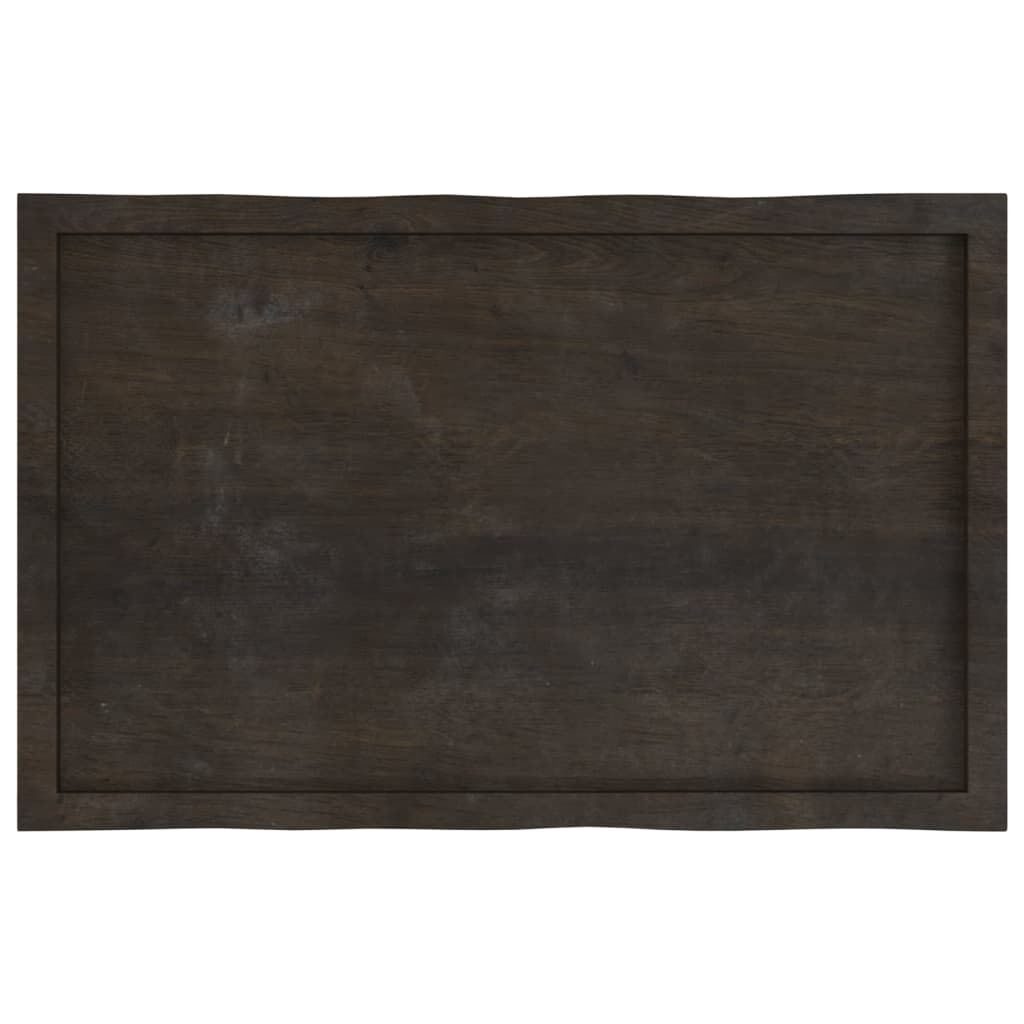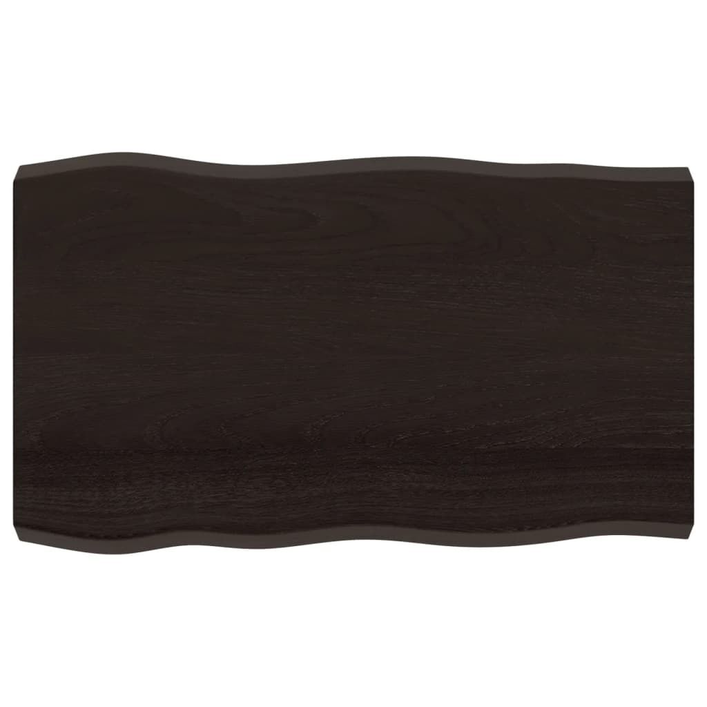 Give a new life to your table with this wooden table top. It is an excellent solution for freshening up your table at home or in a commercial setting. Solid oak wood: The tabletop is made of solid oak wood, which is a beautiful natural material. Oak wood has a medium brown colour and a dense grain, contributing to its unique look.Versatile applications: The replacement table top can be combined with different bases according to your needs.Treated surface: The replacement board has been treated with dark paint, so it is ready for use as an additional finish is not required.Handmade with live edge: The DIY board is meticulously handcrafted, showcasing a live edge that adds to its natural charm. Due to that the knots, cracks, slightly curved shapes, and colour tones are part of the oak wood. Every piece has its own unique character to display. The delivery is random, ensuring the exclusivity and individuality of your product. Good to know:As a natural product, wood may show knots and imperfections that we fill with black fillings to ensure a smooth appearance.